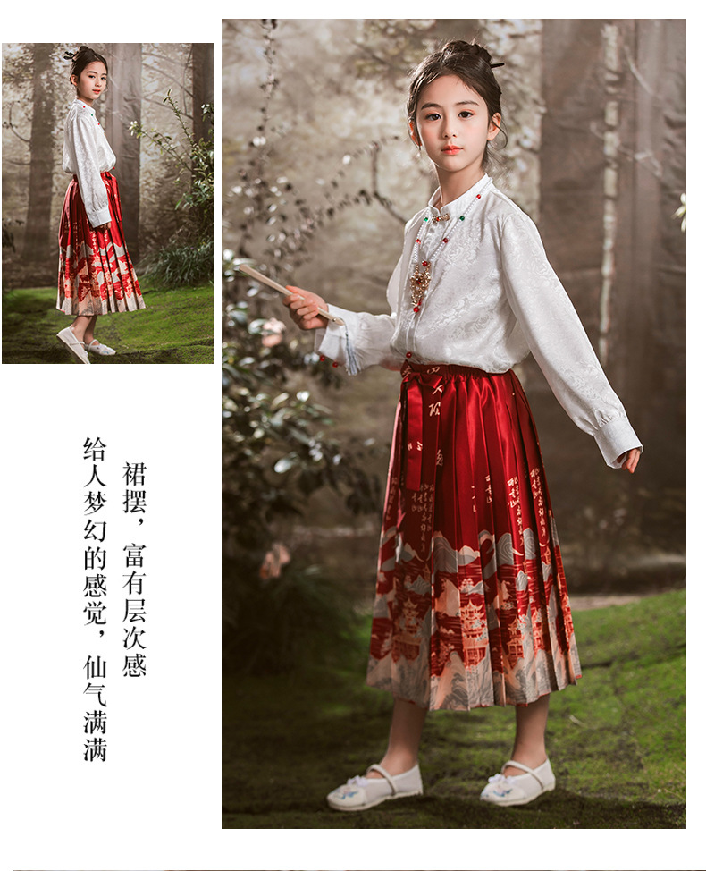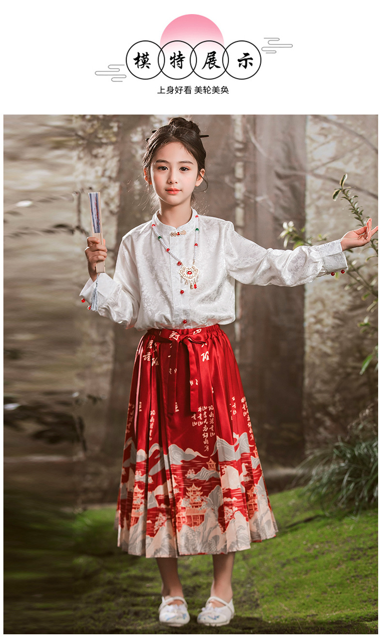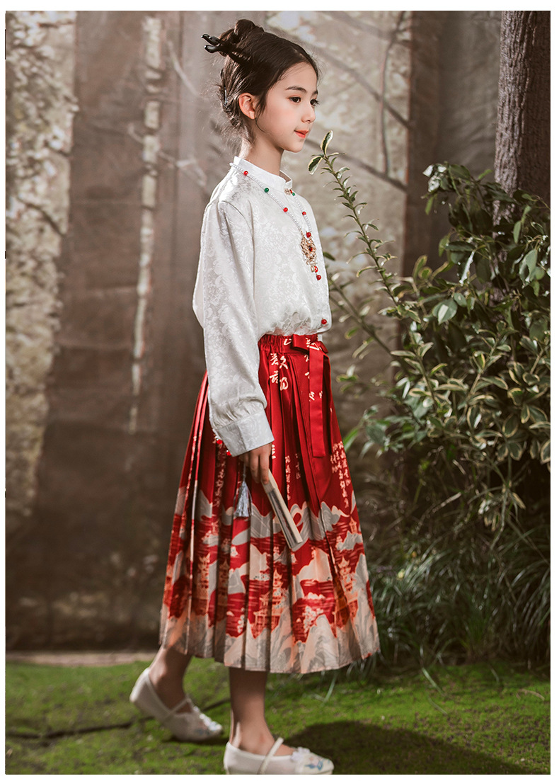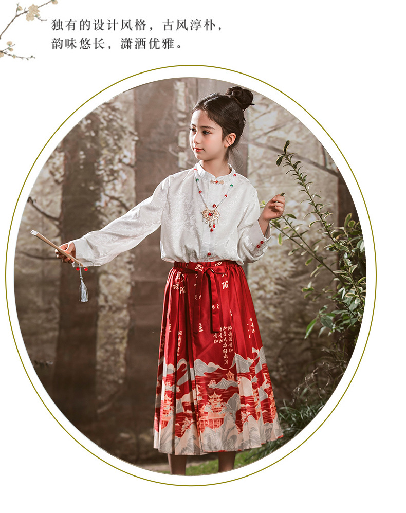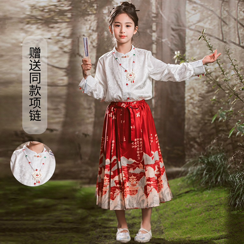 새로운 중국 스타일 소녀 셔츠 어린 소녀의 조끼 치마 세트 봄 2024 새로운 어린이 명나라 한 의류 공주 원피스스토어 가기