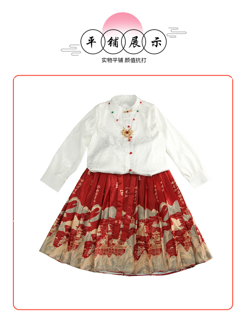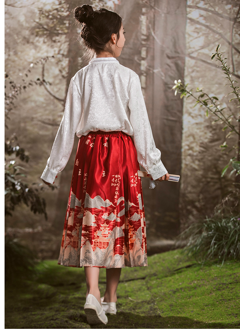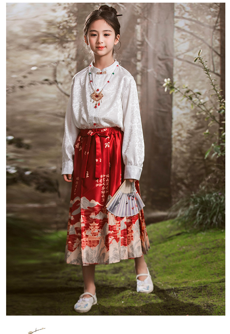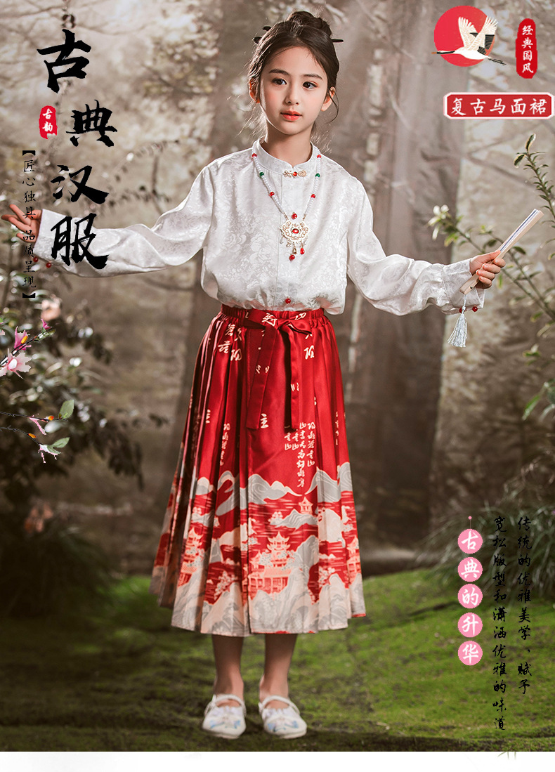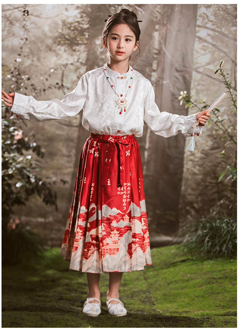 새로운 중국 스타일 소녀 셔츠 어린 소녀의 조끼 치마 세트 봄 2024 새로운 어린이 명나라 한 의류 공주 원피스스토어 가기