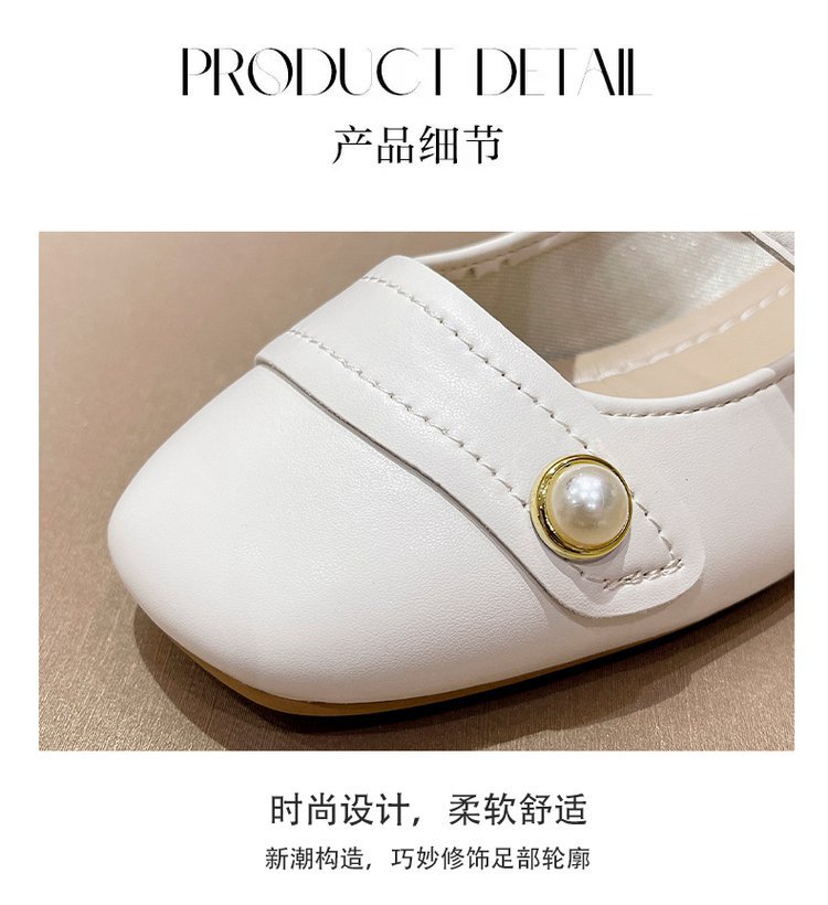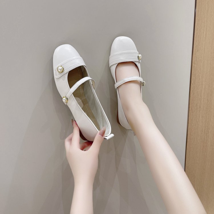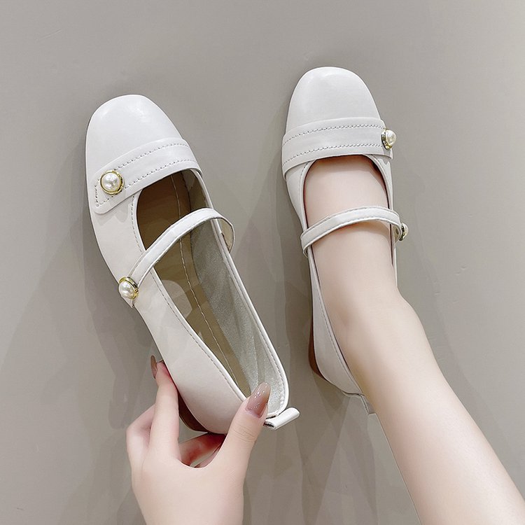 봄과 가을 2024 여성을위한 메리 제인 신발 새로운 한국식 로우 컷 플랫 힐 신발 진주 버클 패션 싱글 레이어 신발스토어 가기