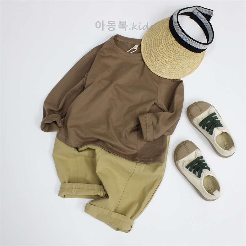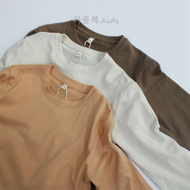 치차오 아동복 25 봄 아동용 기본 티셔츠 단색 남아용 티셔츠 A급 긴팔 한국 스타일 유아 상의 여아용스토어 가기