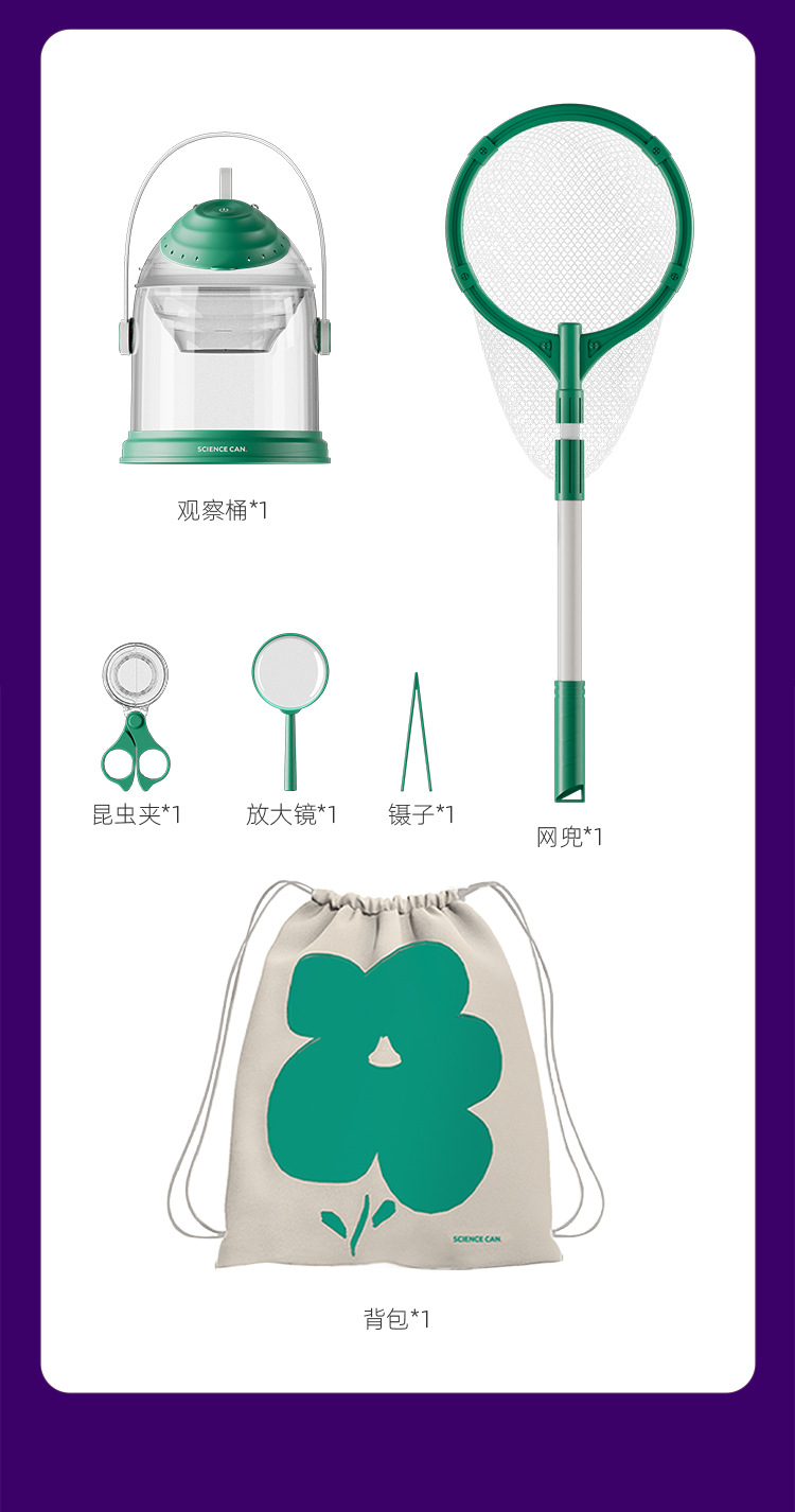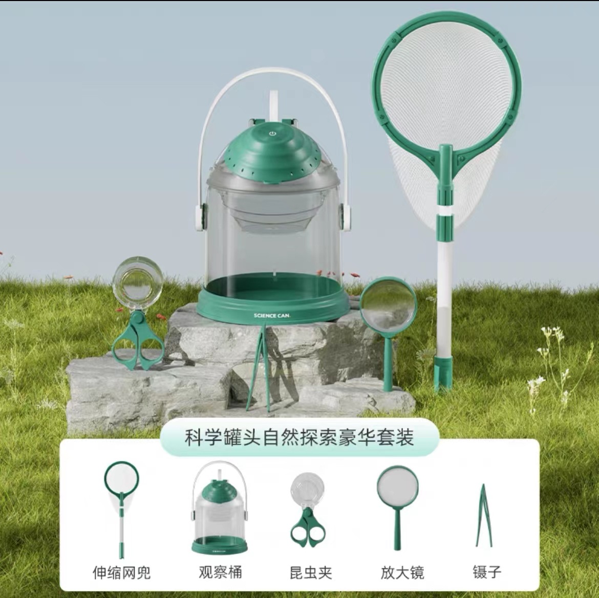 과학 통조림 자연 탐사 곤충 관찰 버킷 돋보기 텔레스코픽 그물 가방 어린이 야외 배낭 장난감 세트스토어 가기