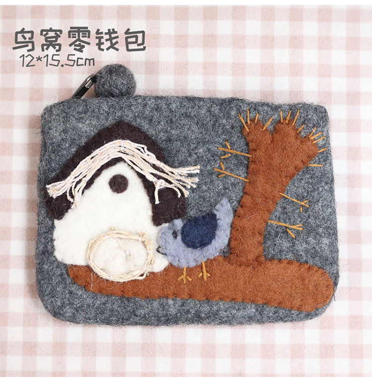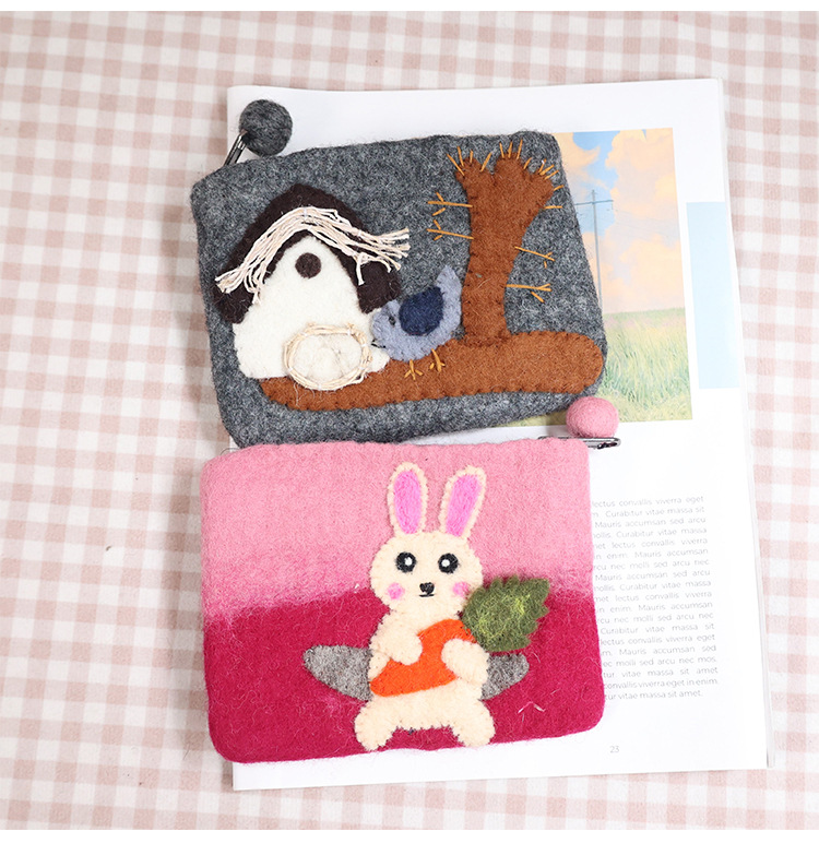 In 스타일 양모 펠트 바늘 귀여운 코끼리 고슴도치 모리 부드러운 귀여운 동전 지갑 카드 홀더 보관 가방 창조적 인 선물스토어 가기