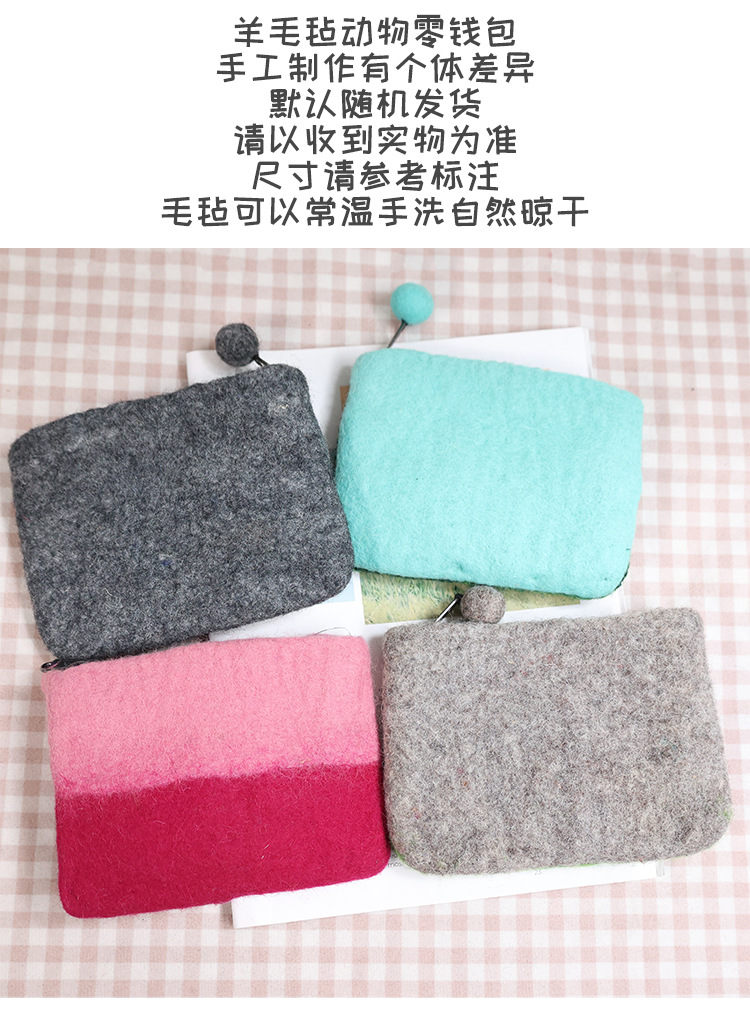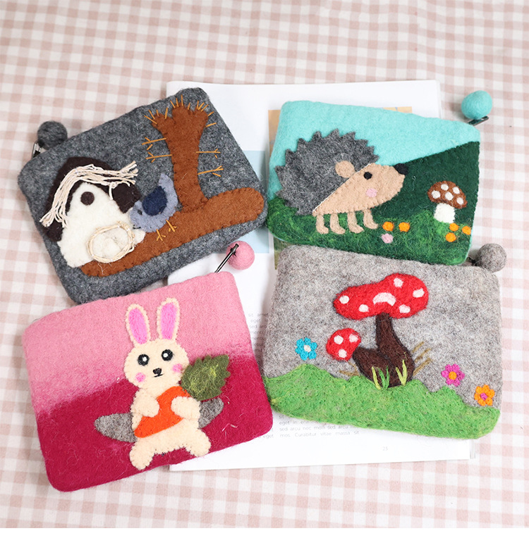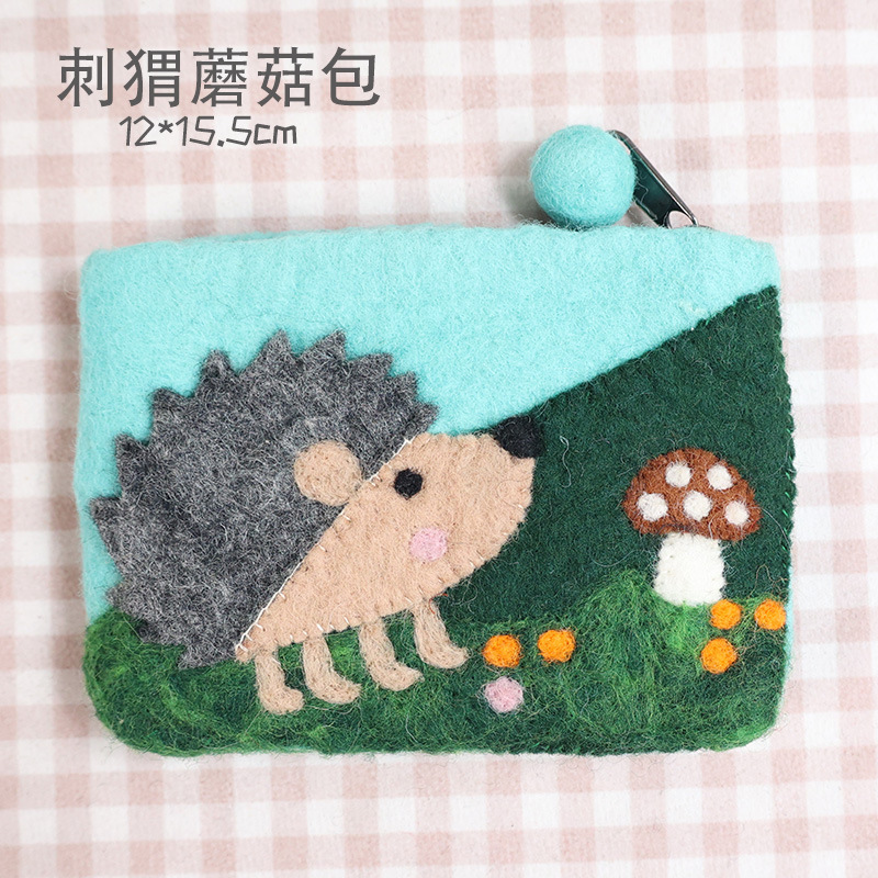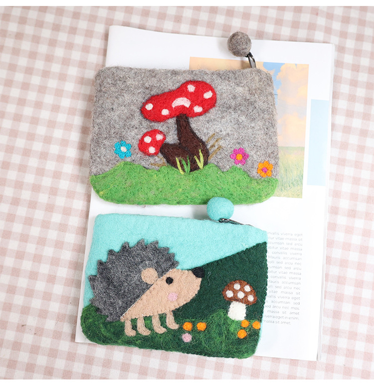 In 스타일 양모 펠트 바늘 귀여운 코끼리 고슴도치 모리 부드러운 귀여운 동전 지갑 카드 홀더 보관 가방 창조적 인 선물