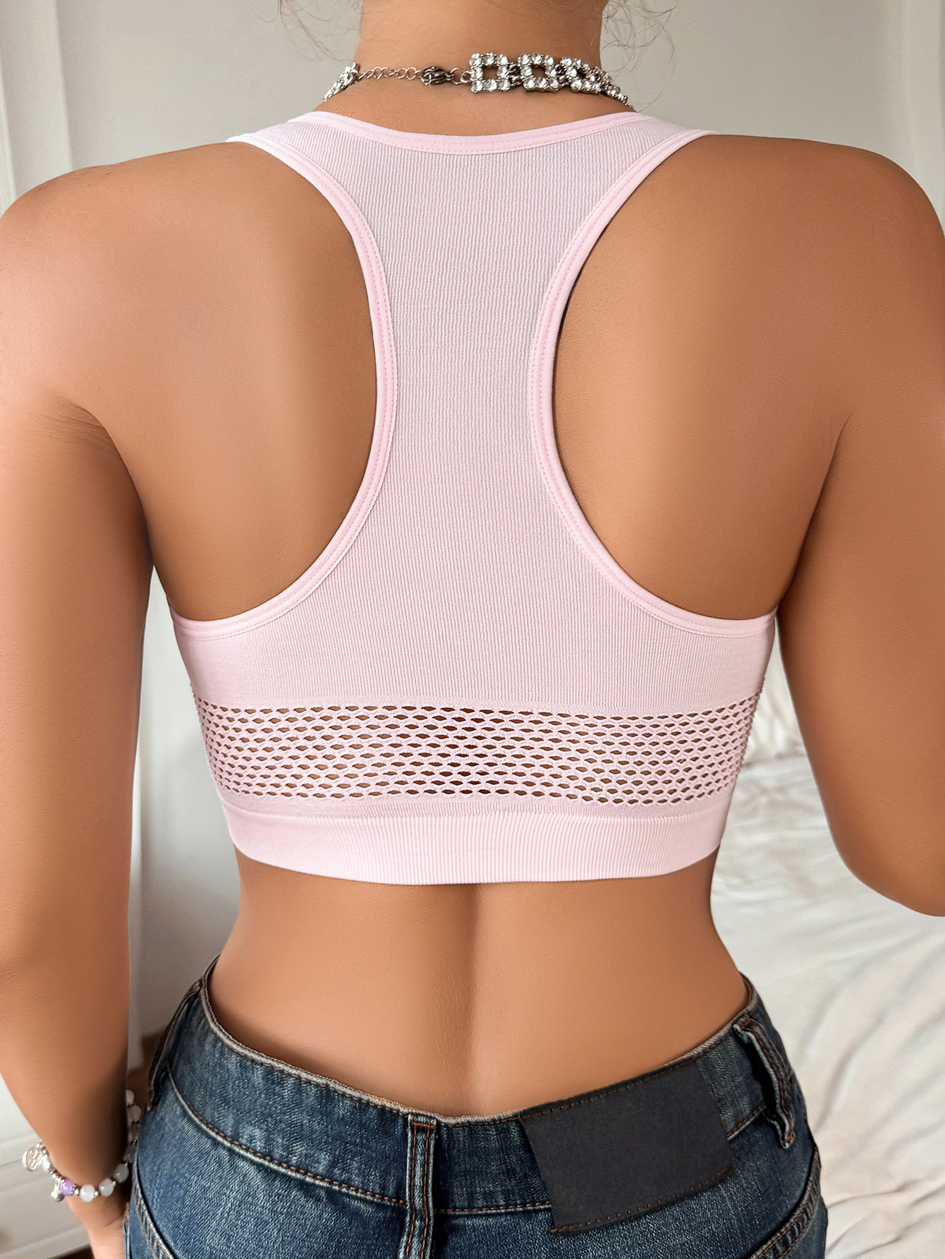 신상품 외국 무역용 조끼형 브라, 풀컵, 허리 노출, 레이스 디자인, 업라이트, 통기성, 2025 유럽 및 미국 스타일 브라, 재고 있음