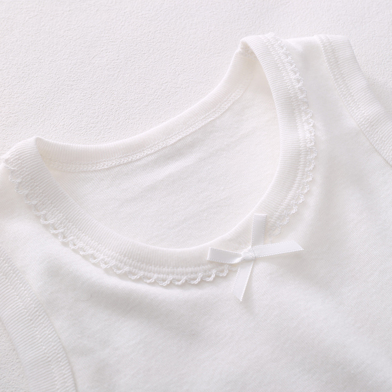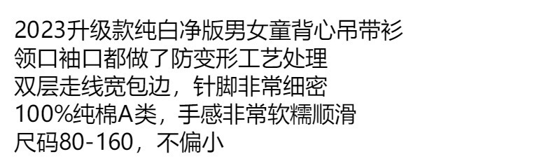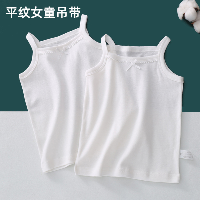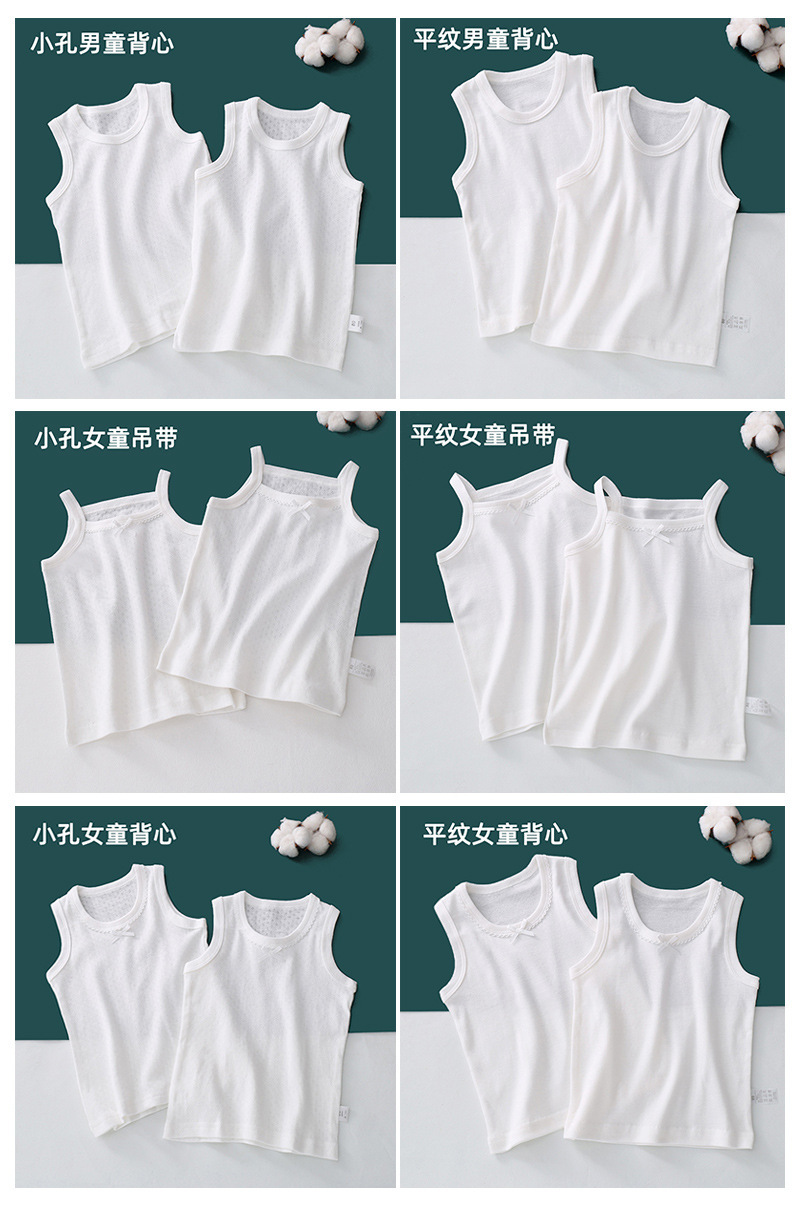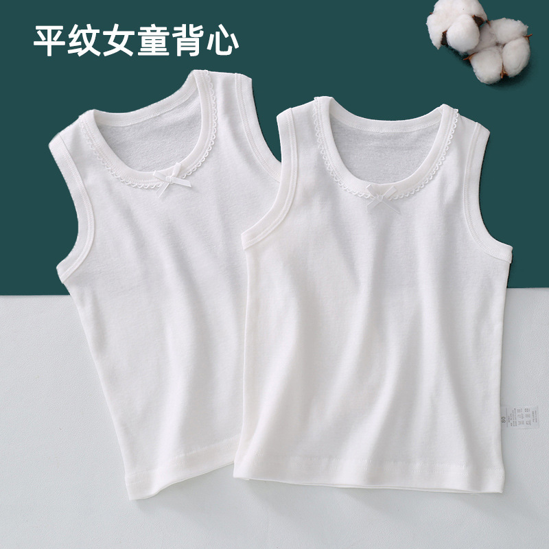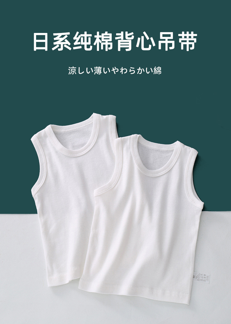 일본 여름 얇은 중간 및 큰 어린이 최고 순면 클래스 순수한 흰색 소년 소녀 조끼 캐미솔 바닥 셔츠