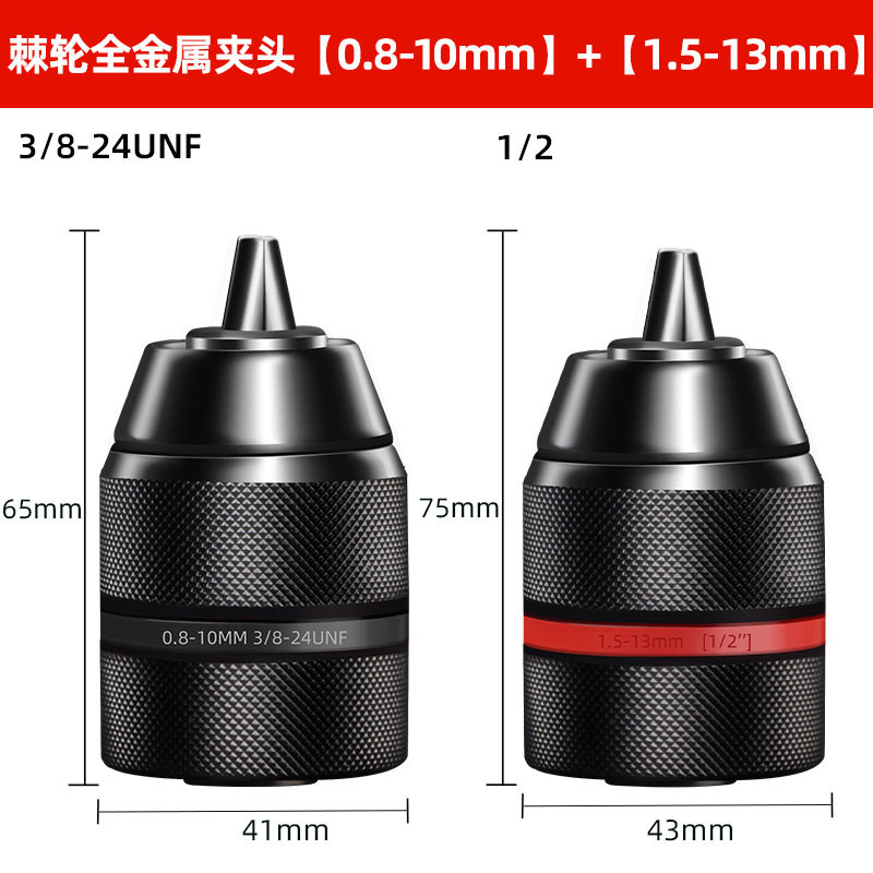 • 새로운 업그레이드 래칫 모든 금속 척 [0.8-10mm] + [1.5-13mm].