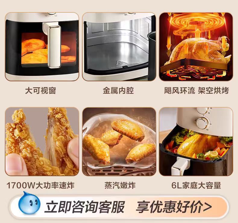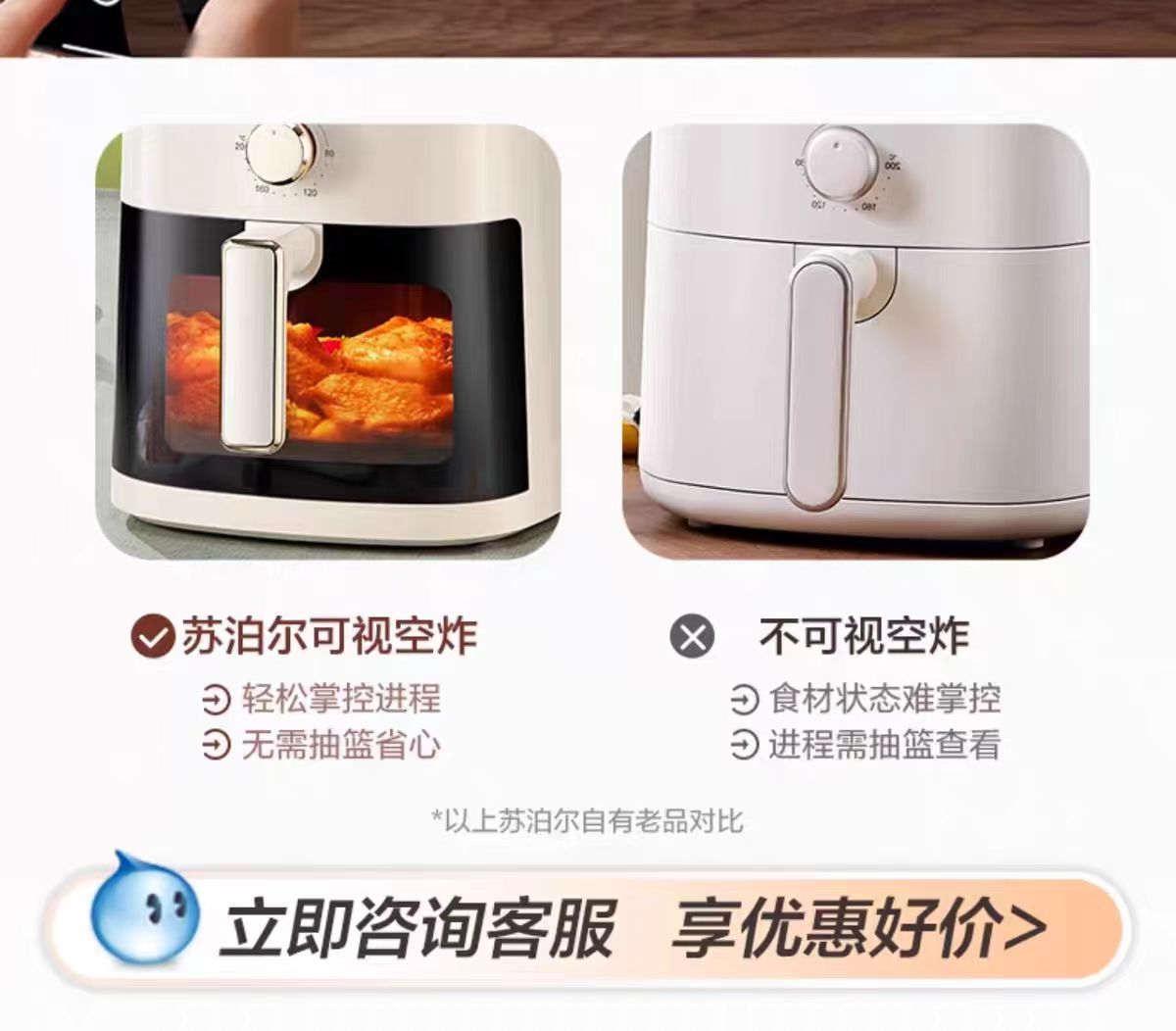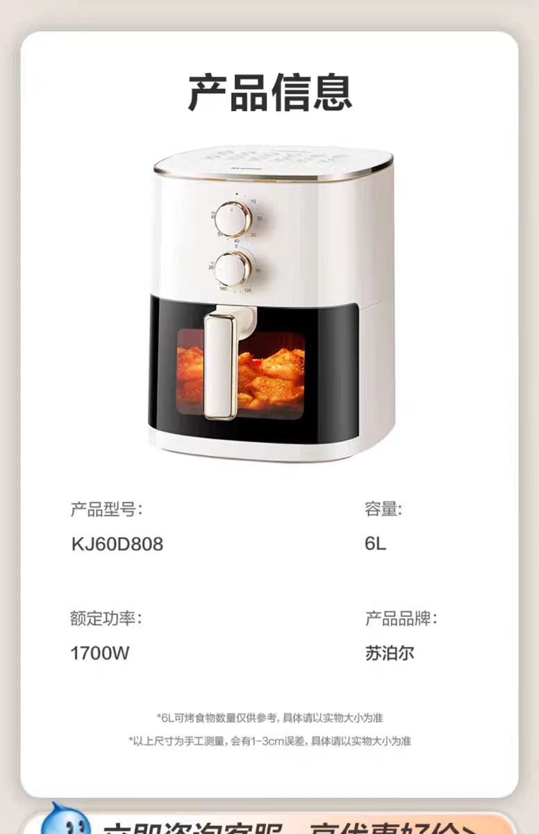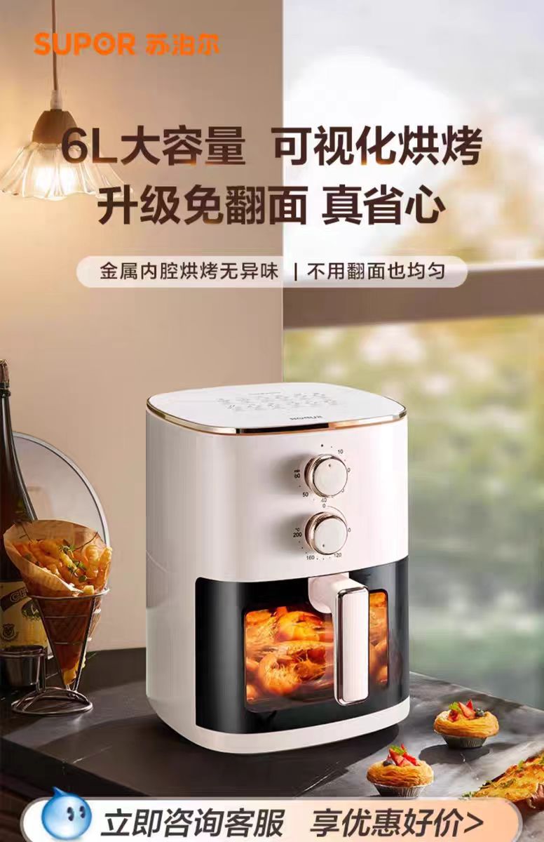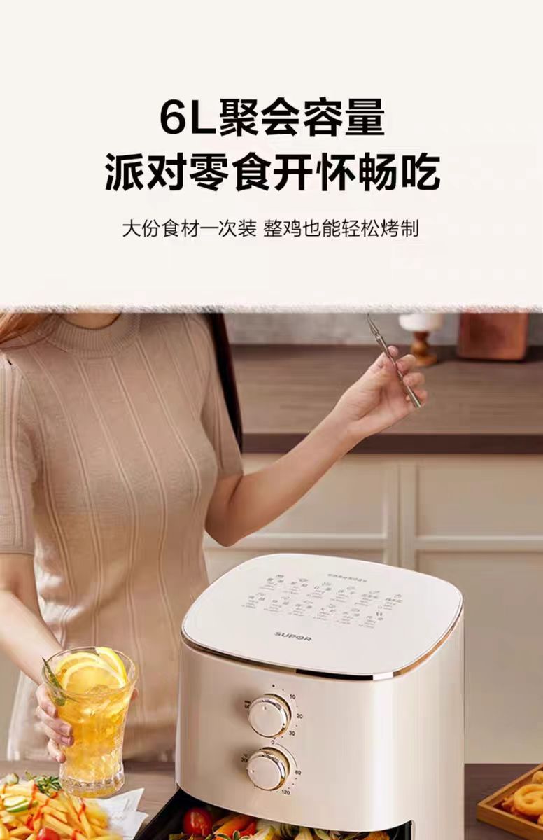 Supor 에어 프라이어 가정용 6L 대용량 비주얼 오븐 올인원 전기 프라이어 감자 튀김 기계 도매 선물스토어 가기