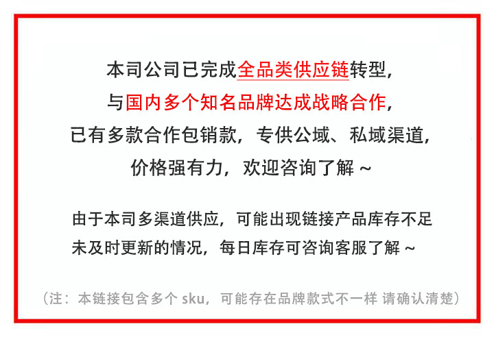 下单请咨询客服是否有货,库存每日更新,避免造成不必要的误会与损失。我司专注家用电器、美妆、食品酒水、家居百货等全品供应链一万多个商品、需要拿货代发搞活动做礼品请咨询客服享批发底价。谢谢