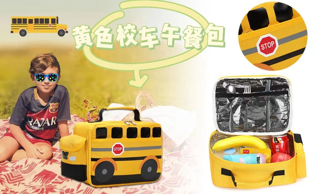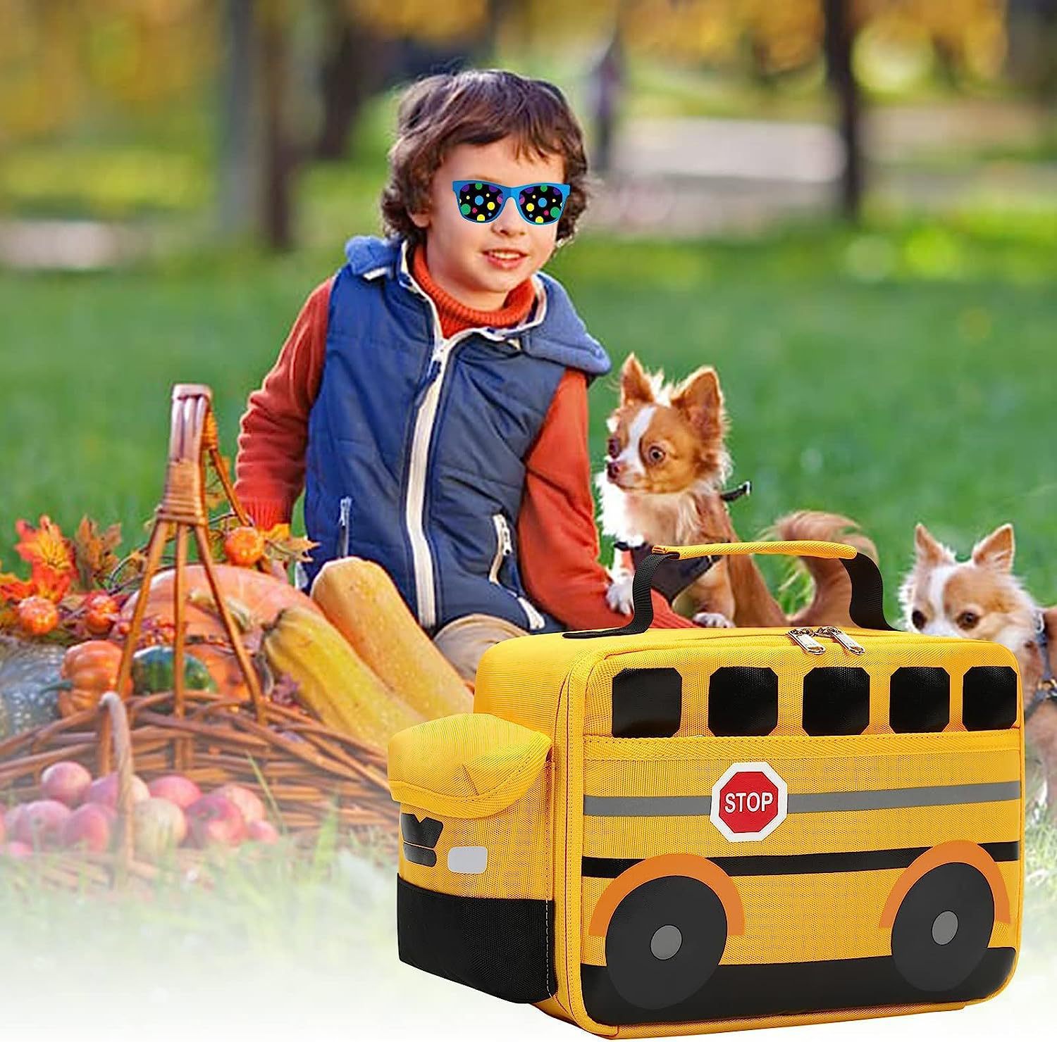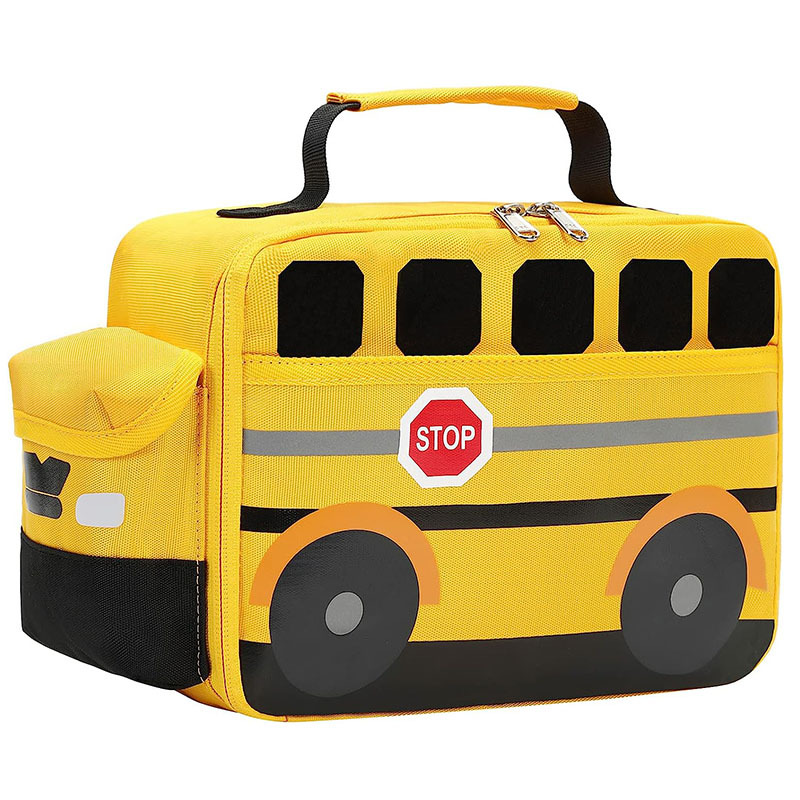 어린이 만화 자동차 점심 가방 다기능 단열 및 냉장 보존 피크닉 가방 휴대용 아이스 백 노란색 학교 버스 가방스토어 가기