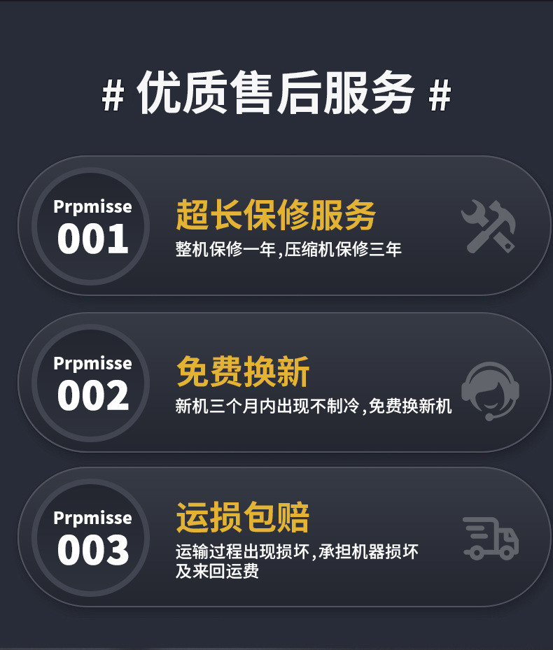 一、新机三个月内如出现不制冷,无条件更换新机,来回运费厂家负责。