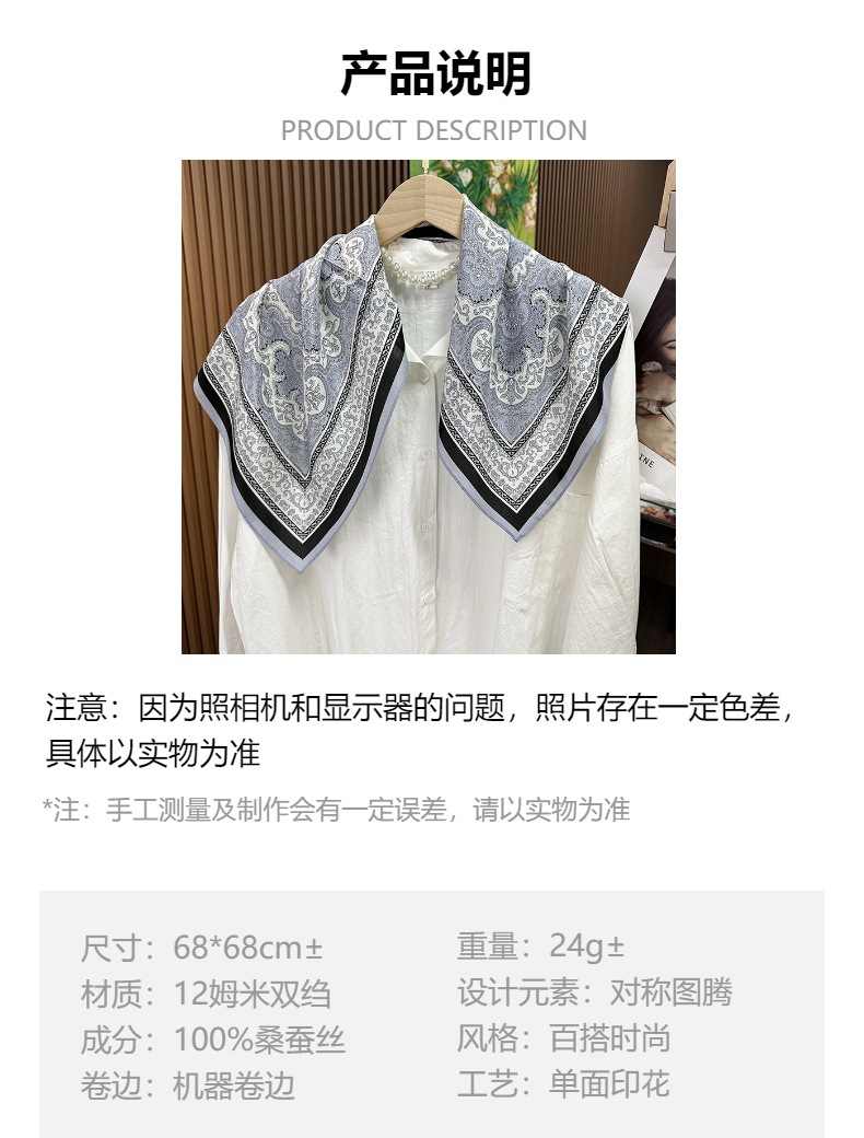 여성을위한 우아한 흰색 실크 스카프 봄 새로운 실크 크레이프 드 Chine 70cm 작은 사각형 스카프 패션 올 매치 스카프 도매