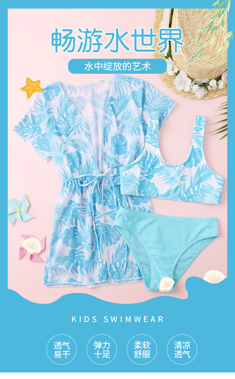 2025 새로운 메쉬 3 피스 아동 수영복 여성 크로스 보더 아마존 프린트 소녀 스플릿 중대형 아동 수영복스토어 가기