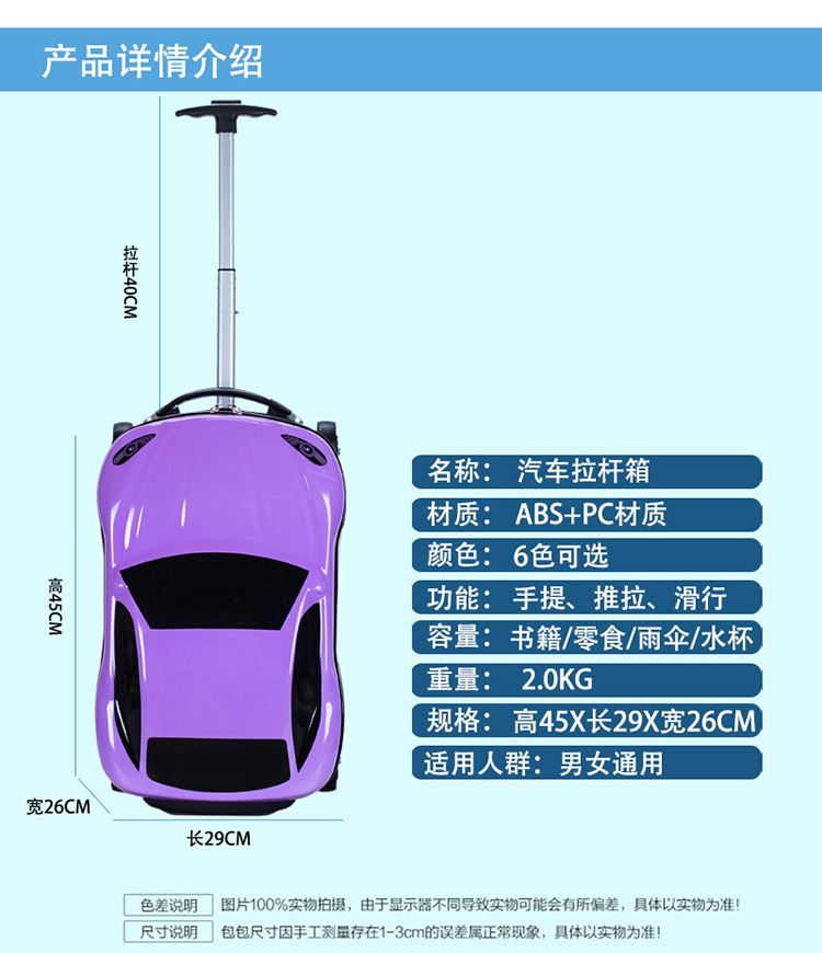 어린이 자동차 트롤리 케이스 3 차원 유니버설 휠 학생 탑승 케이스 선물 패턴 인쇄 여행 가방