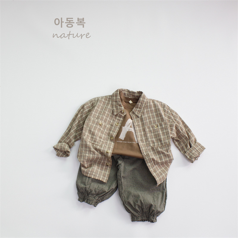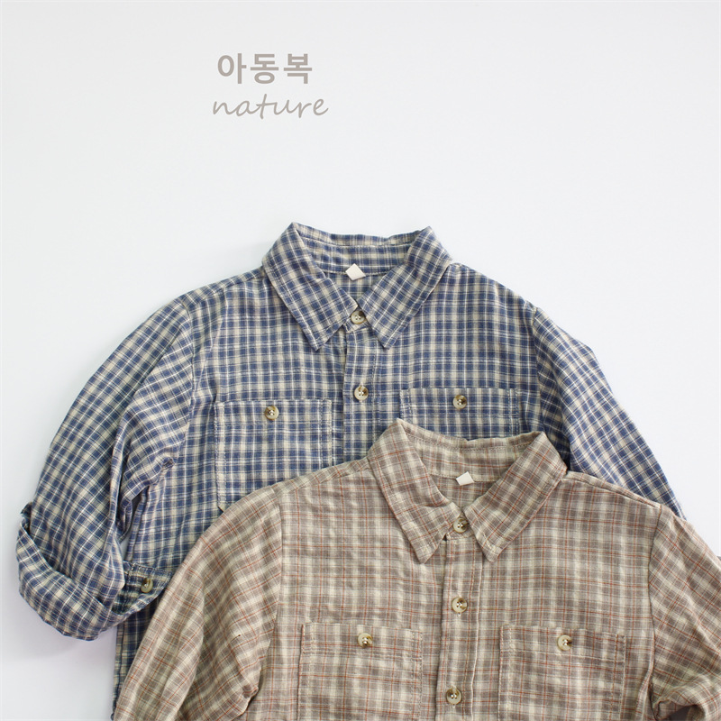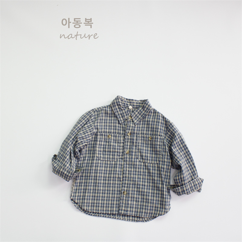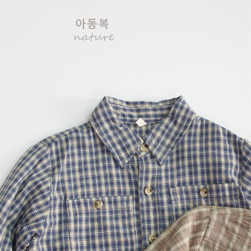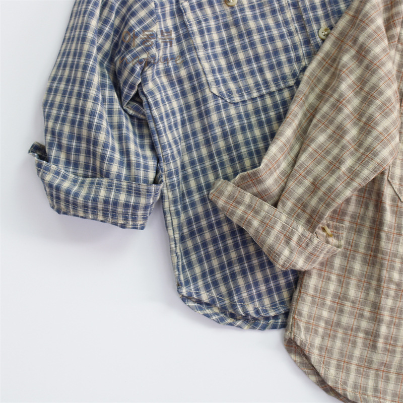 2025 어린이 셔츠 봄 소녀 셔츠 클래스 한국어 스타일 옷깃 격자 무늬 소년 탑 순수 코튼 긴팔 도매스토어 가기