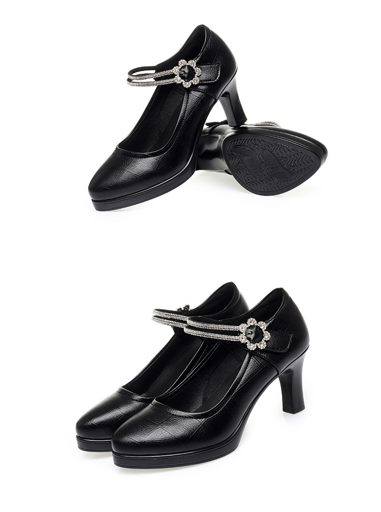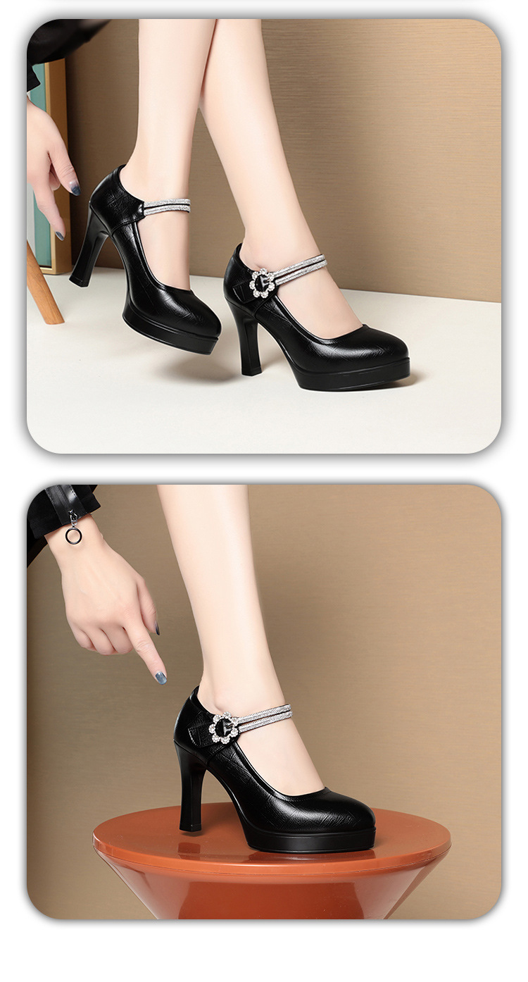 모델 캣워크 하이힐 여성의 피곤하지 않은 발 2024 새로운 봄과 가을 싱글 레이어 신발 두꺼운 바닥 방수 플랫폼 버클 cheongsam 신발스토어 가기