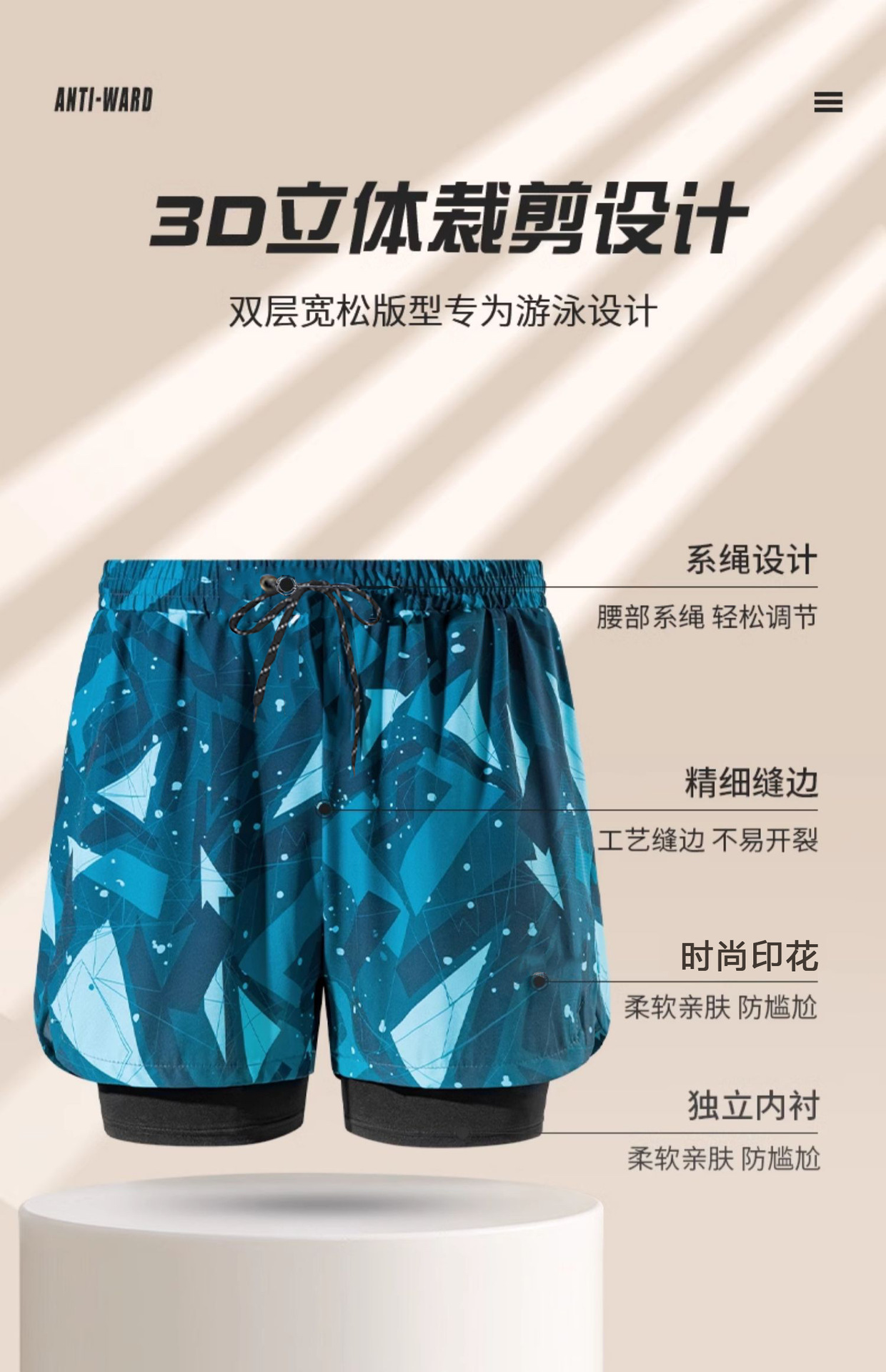 남성용 수영 팬츠, 온천 수영 팬츠, 당황스러운 루즈 수영 팬츠, 2025년 신형 페이크 투피스 비치 팬츠, 남성용 수영 장비