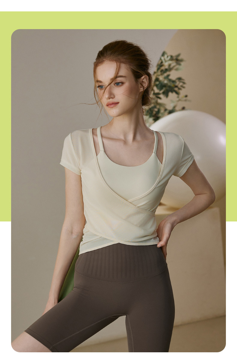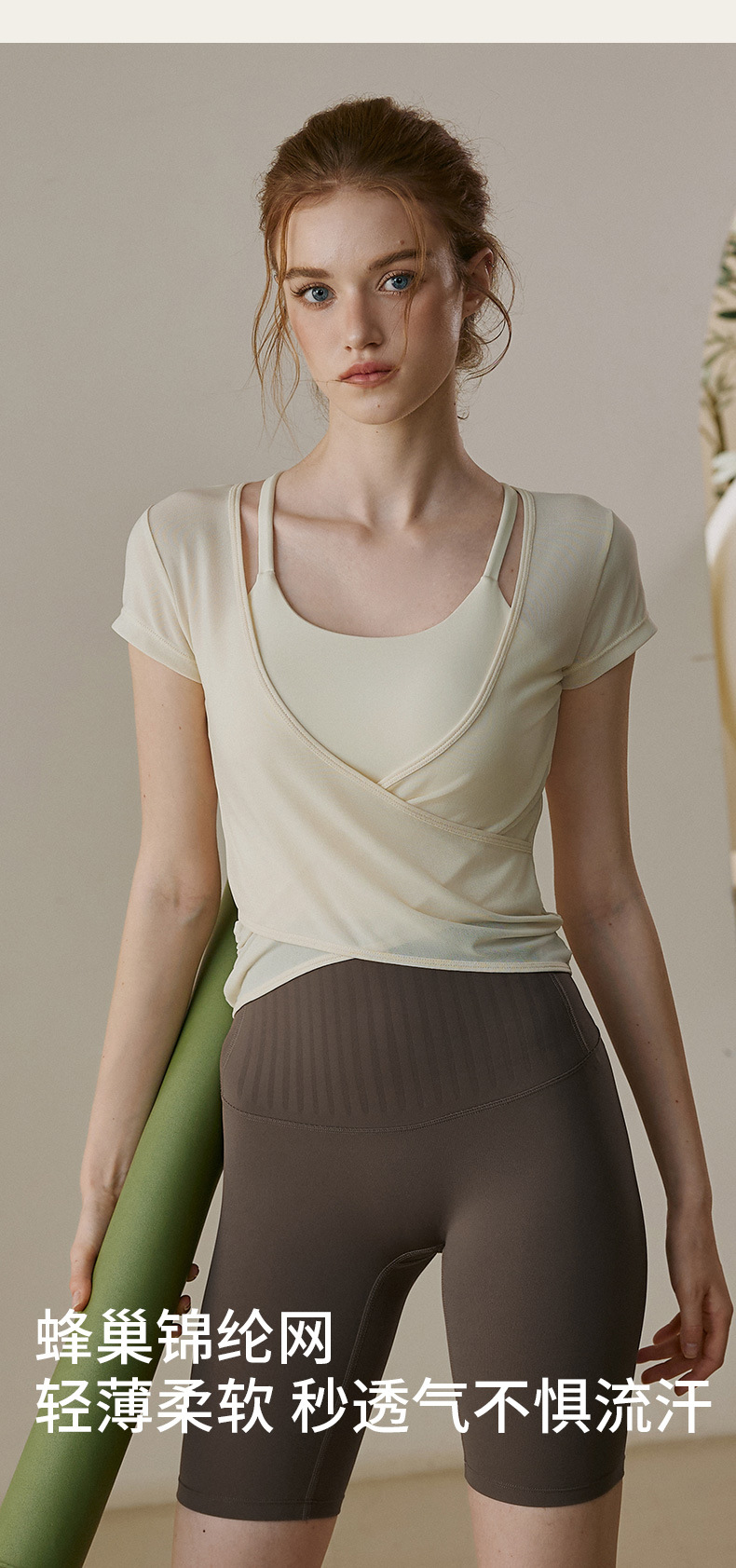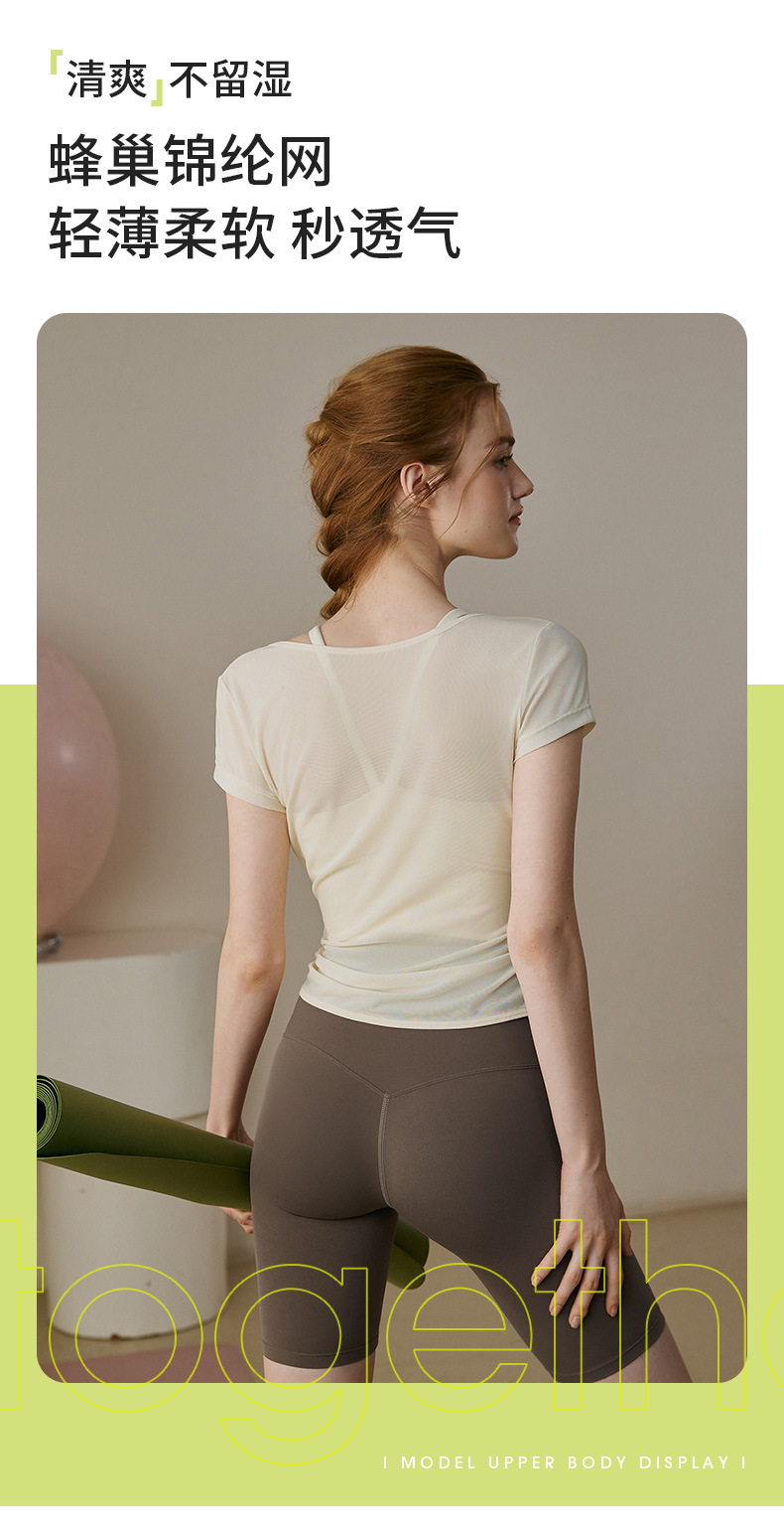 요가복 여성용 2025 신상 여름 얇은 메쉬 슬림핏 반팔 스포츠 커버업 러닝 트레이닝 피트니스 탑스토어 가기