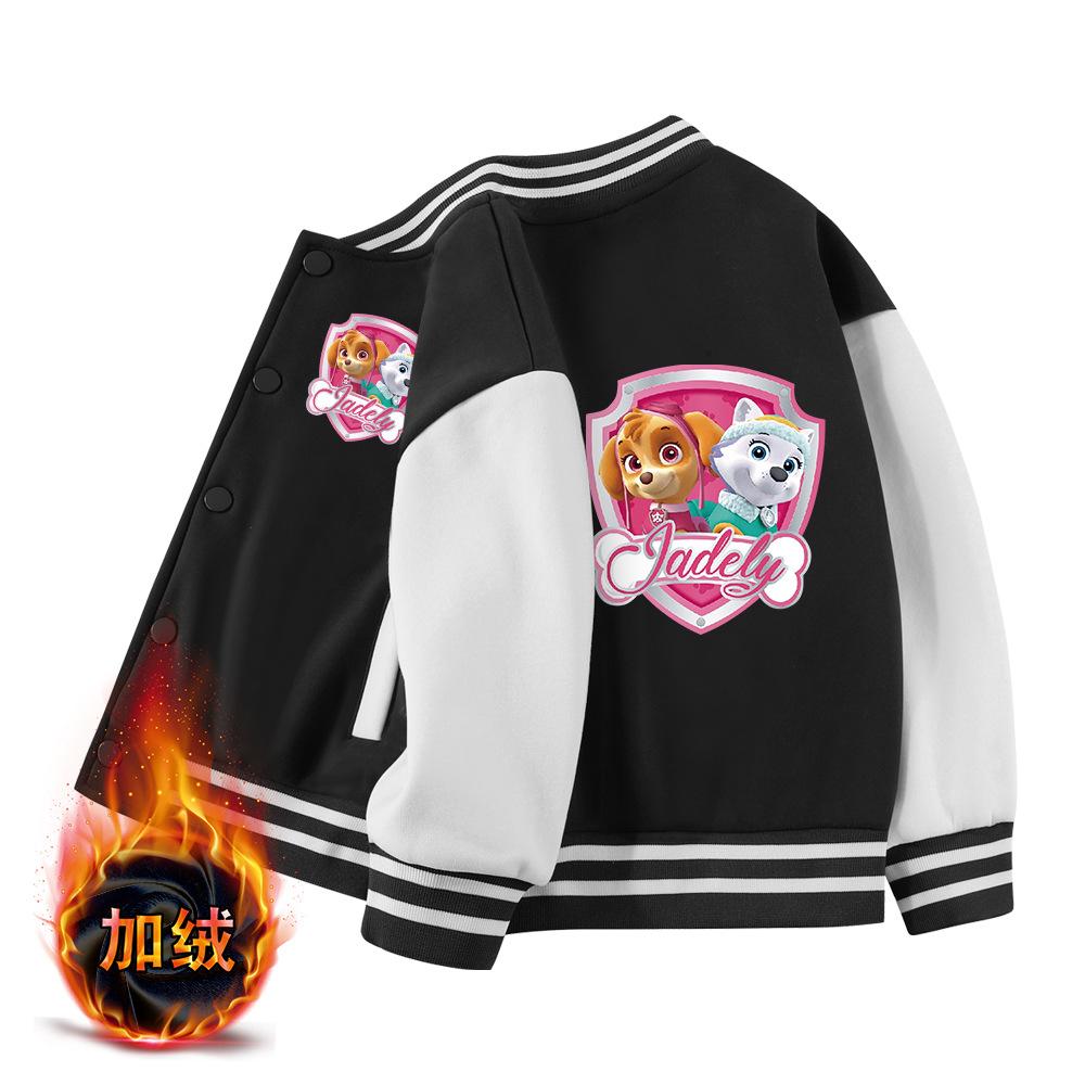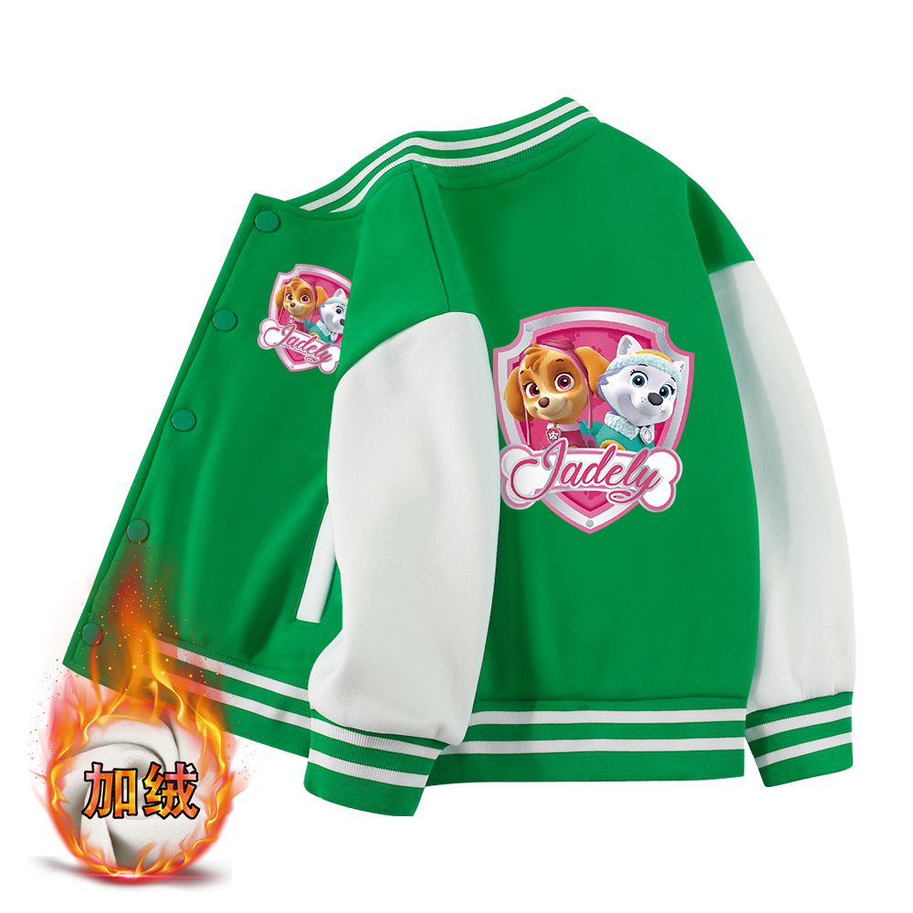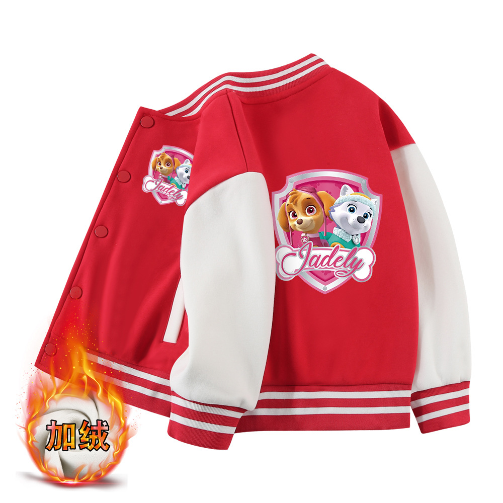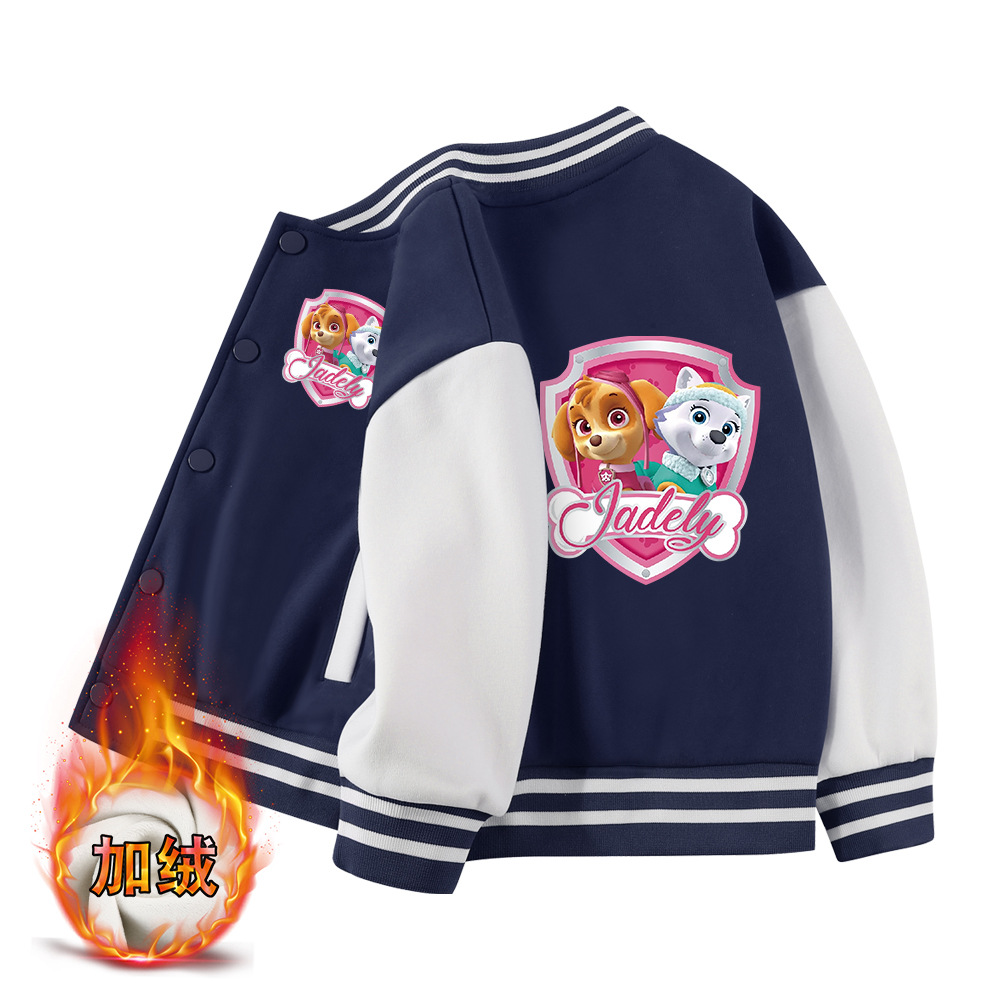 왕왕 소녀들의 가을과 겨울 코트 새로운 어린이 중간 두께의 야구 유니폼 어린이 올매치 기모 서양식 탑스토어 가기