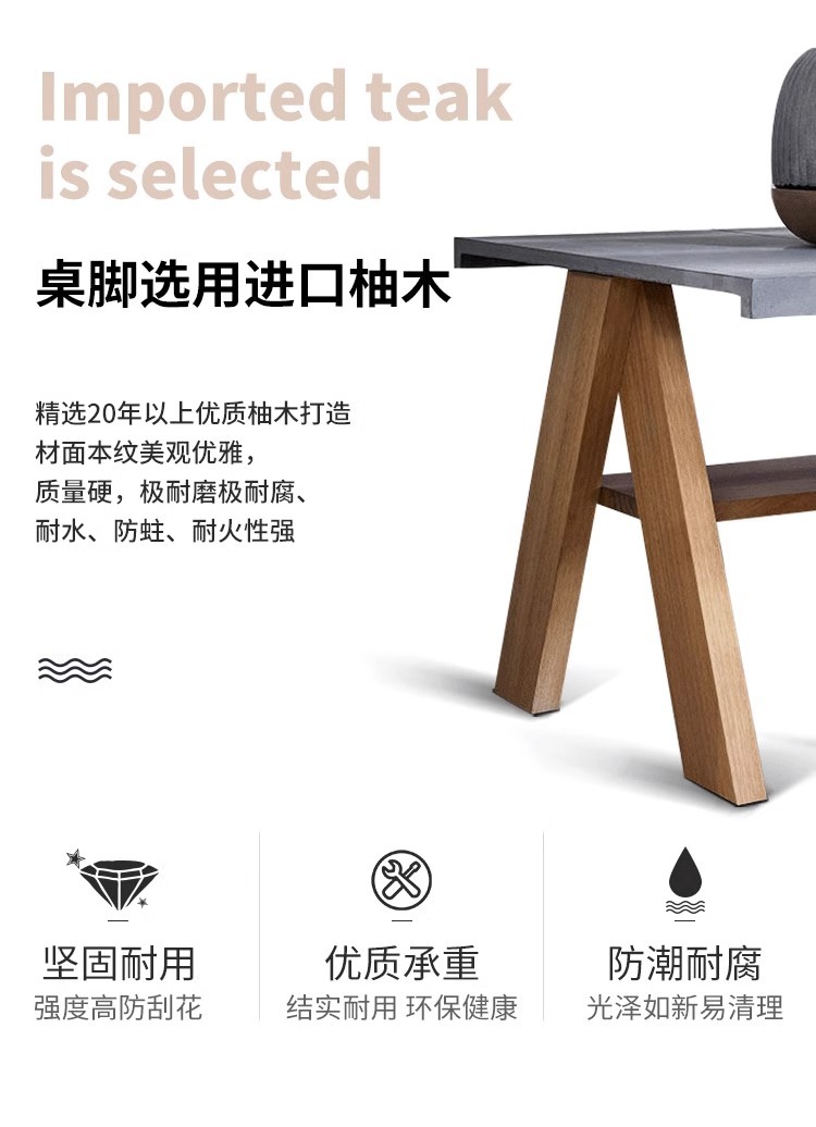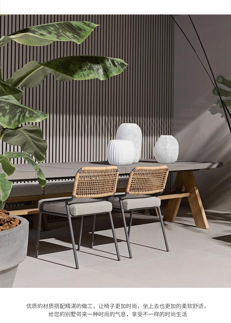 북유럽 야외 티크 테이블과 의자 안뜰 야외 식탁 및 의자 호텔 빌라 방수 자외선 차단제 야외 단단한 나무 테이블 및 의자