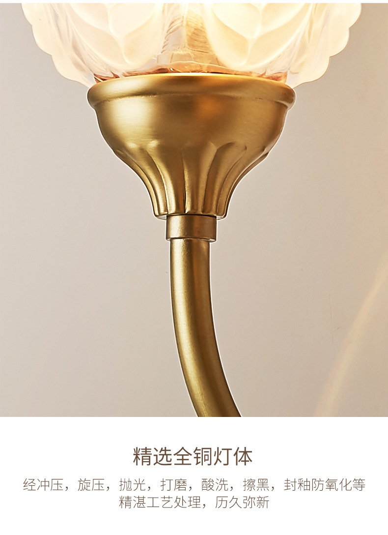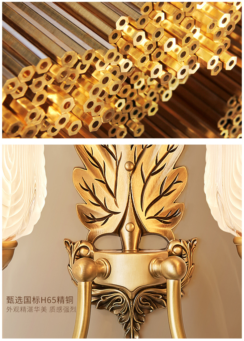 모든 구리 미국 벽 램프 침실 침대 옆 램프 조명 고급 현대 간단한 램프 복고풍 빌라 거실 배경 벽 램프