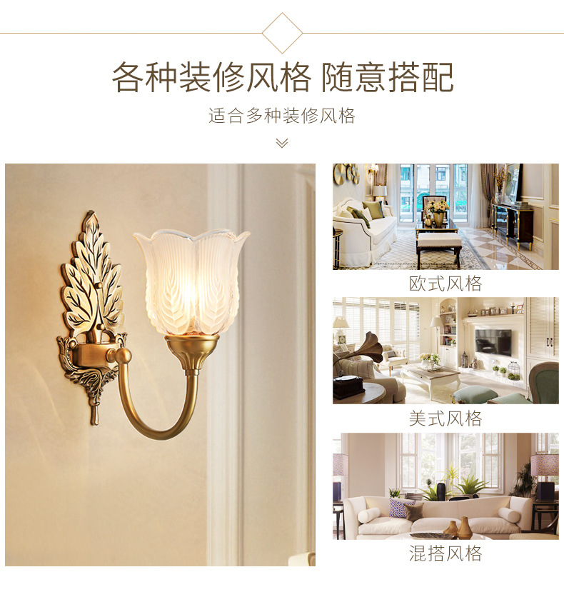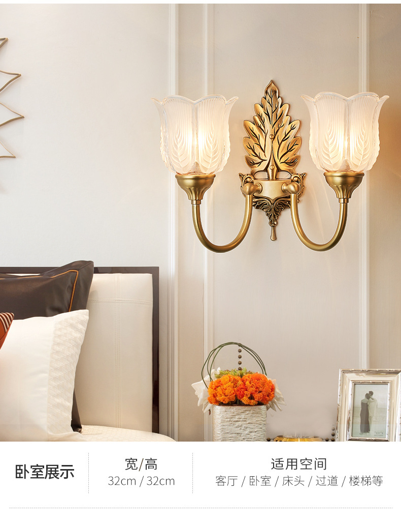 모든 구리 미국 벽 램프 침실 침대 옆 램프 조명 고급 현대 간단한 램프 복고풍 빌라 거실 배경 벽 램프스토어 가기