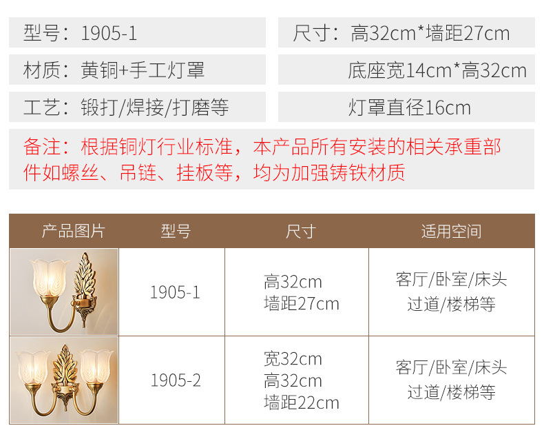 • 두 배 머리 벽 램프-구리