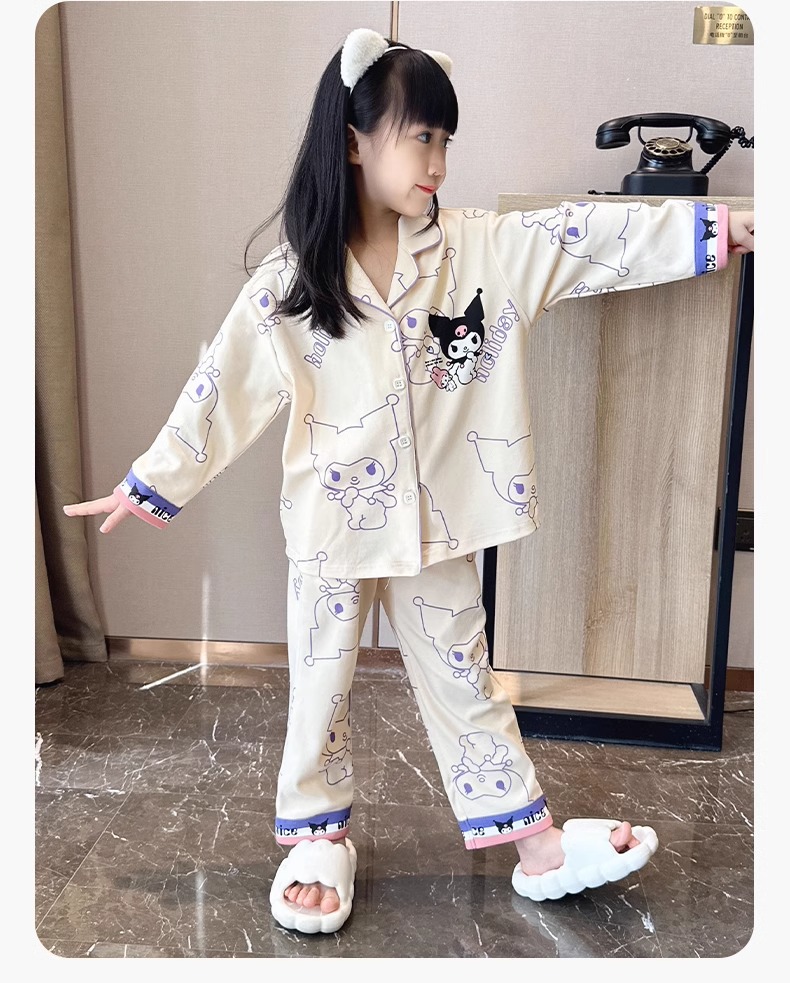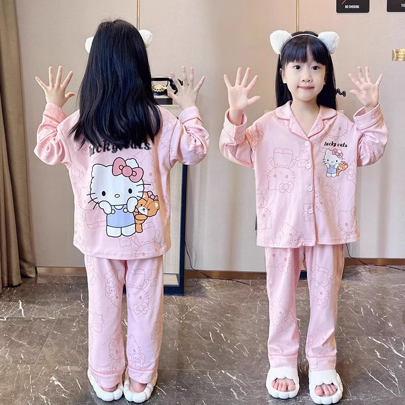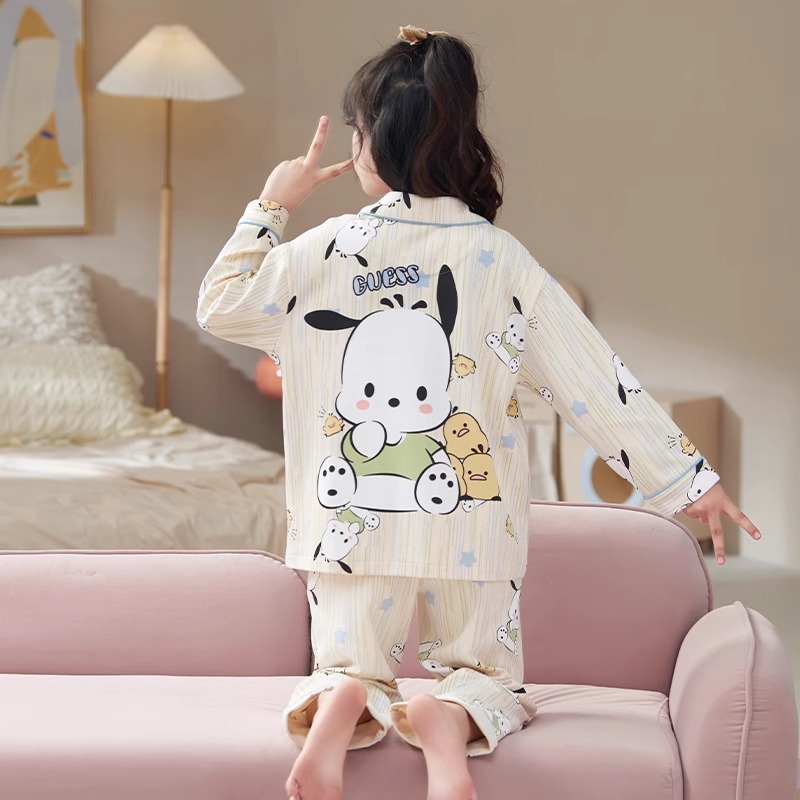 소녀 잠옷 2024 새로운 봄과 가을 면 긴 소매 어린이 여름 큰 어린이 집 옷 어린 소녀의 세트
