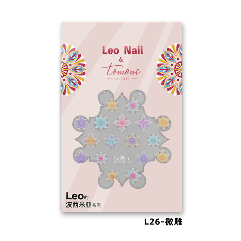 L26 마이크로 조각 LEO & tomoni 협력 일본 소프트 컬러 네일 스티커 접착 네일 스티커 보헤미안