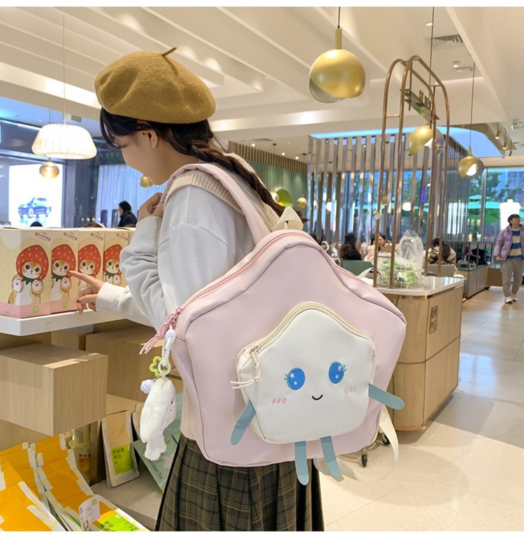 귀여운 신선한 스타 배낭 2024 새로운 달콤한 만화 다섯개 별 배낭 일본 인형 여행 가방스토어 가기