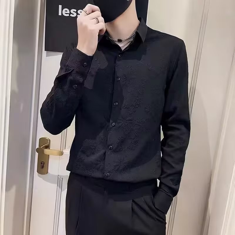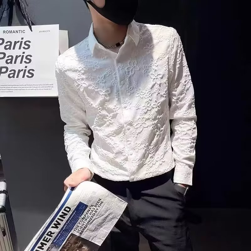 고급 자카드 화이트 셔츠 남성 봄 새로운 긴 소매 패션 브랜드 Ruan Shuai 슬림 셔츠 트렌디 한 헤어 스타일리스트 셔츠스토어 가기