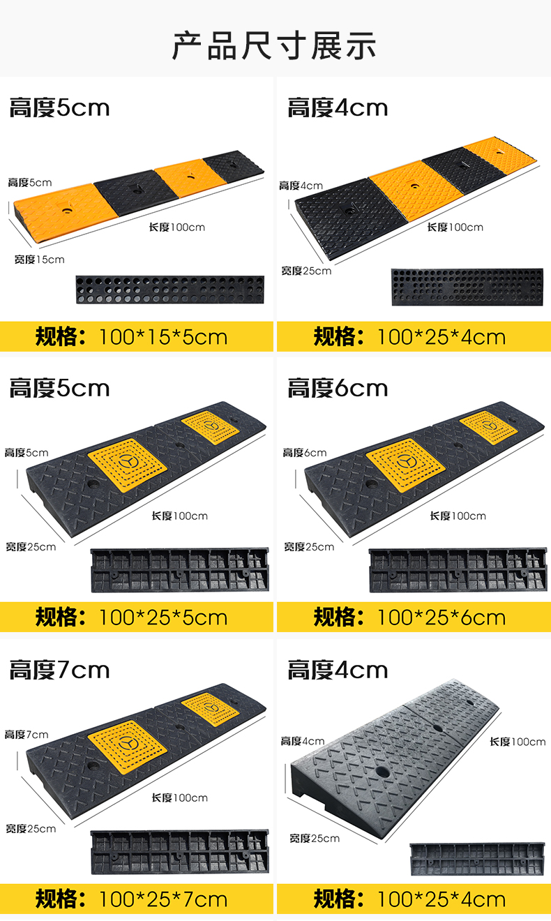 도로 치아 계단 패드 경사 패드 고무 자동차 오르막 등반 삼각형 임계 패드 도로 경사 속도 범프