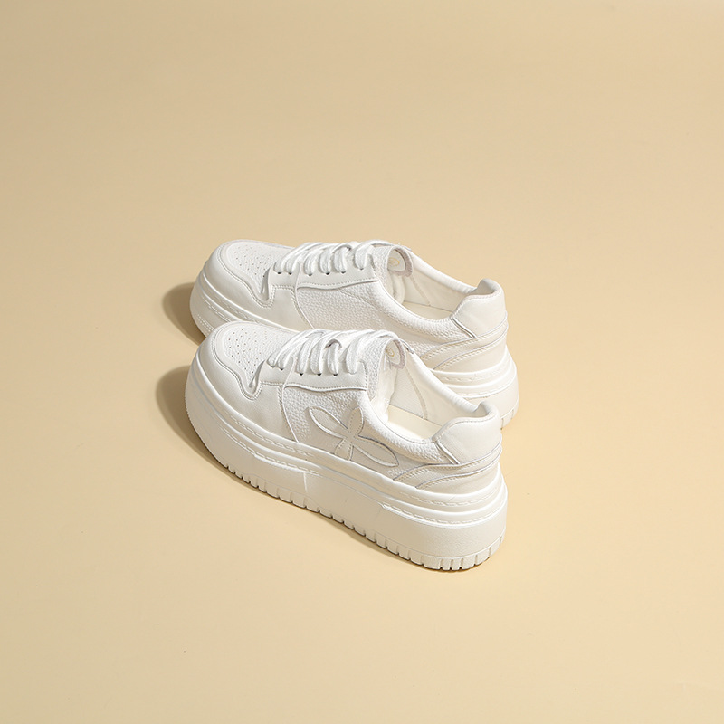 두꺼운 밑창의 여성용 흰색 운동화 2025년 봄 신상 다용도 경량 통기성 키높이 크로스 패턴 캐주얼 스니커즈스토어 가기