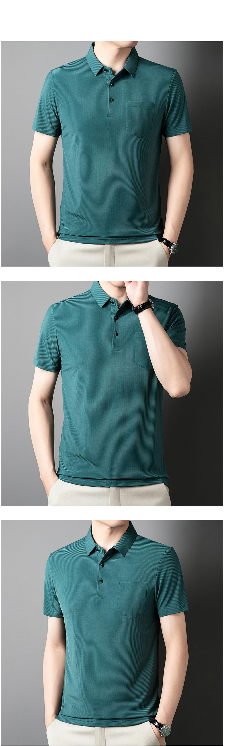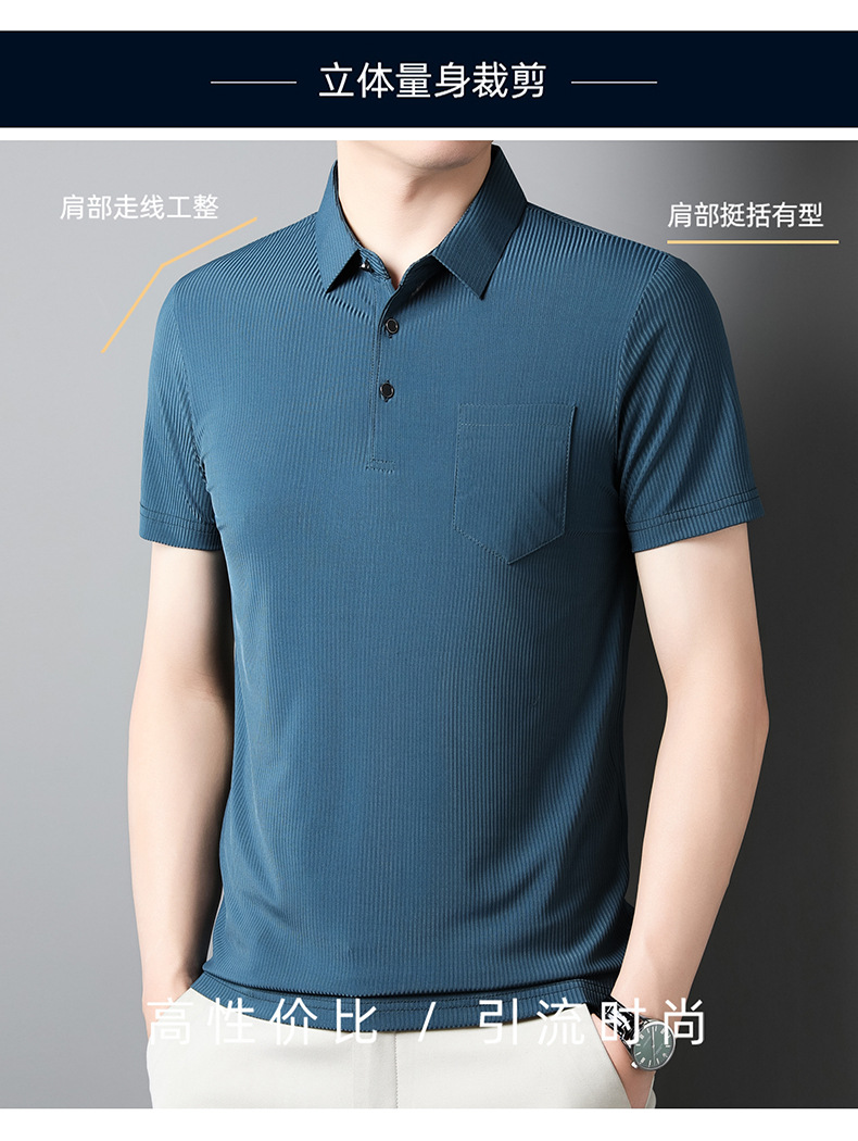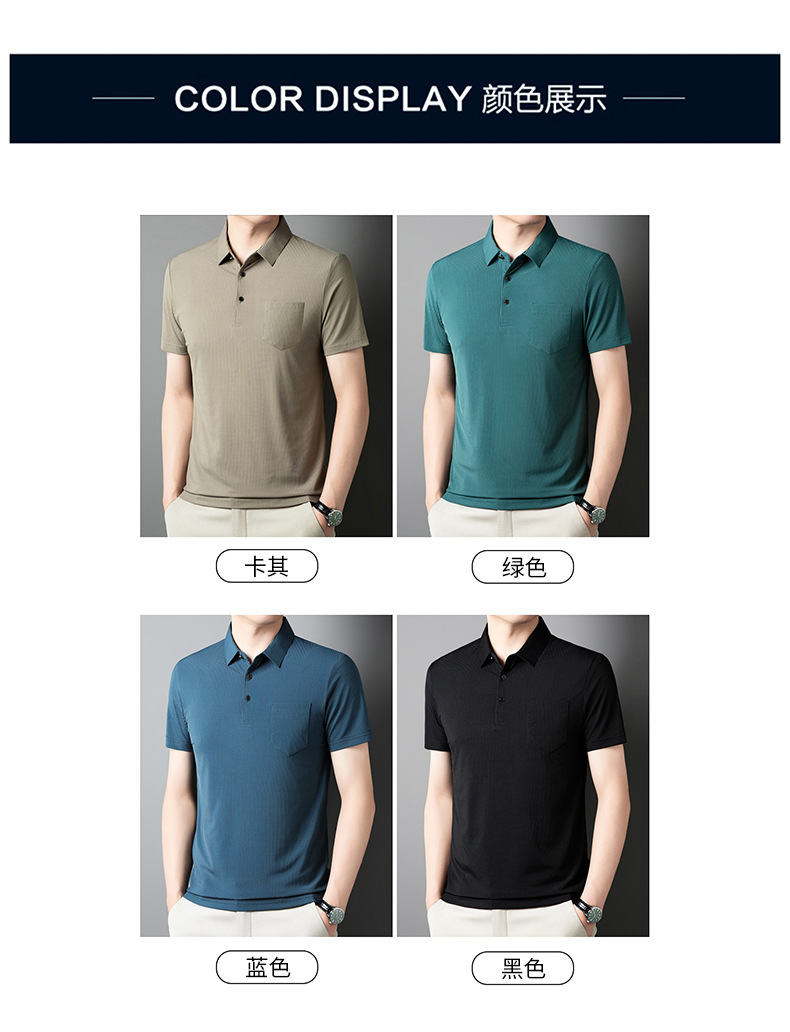 2024 새 여름 중년 남성 반팔 티셔츠 아이스 실크 진짜 포켓 아빠 여름 중년 및 노인 남성용 탑 착용