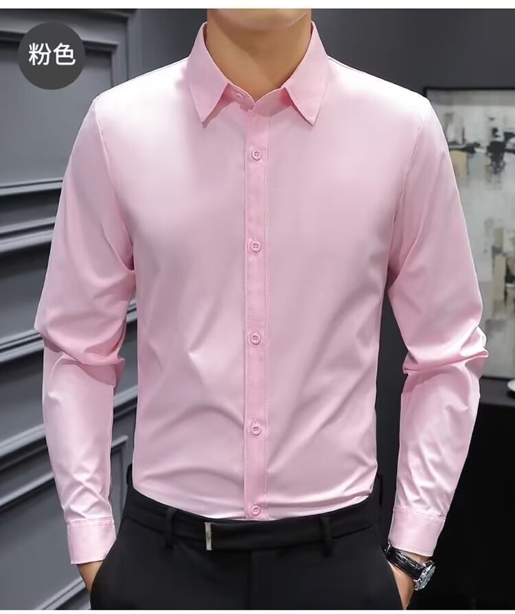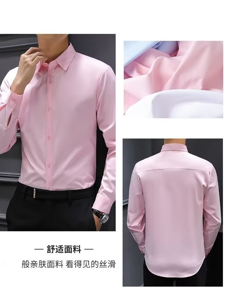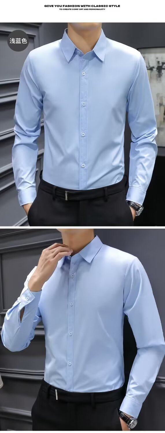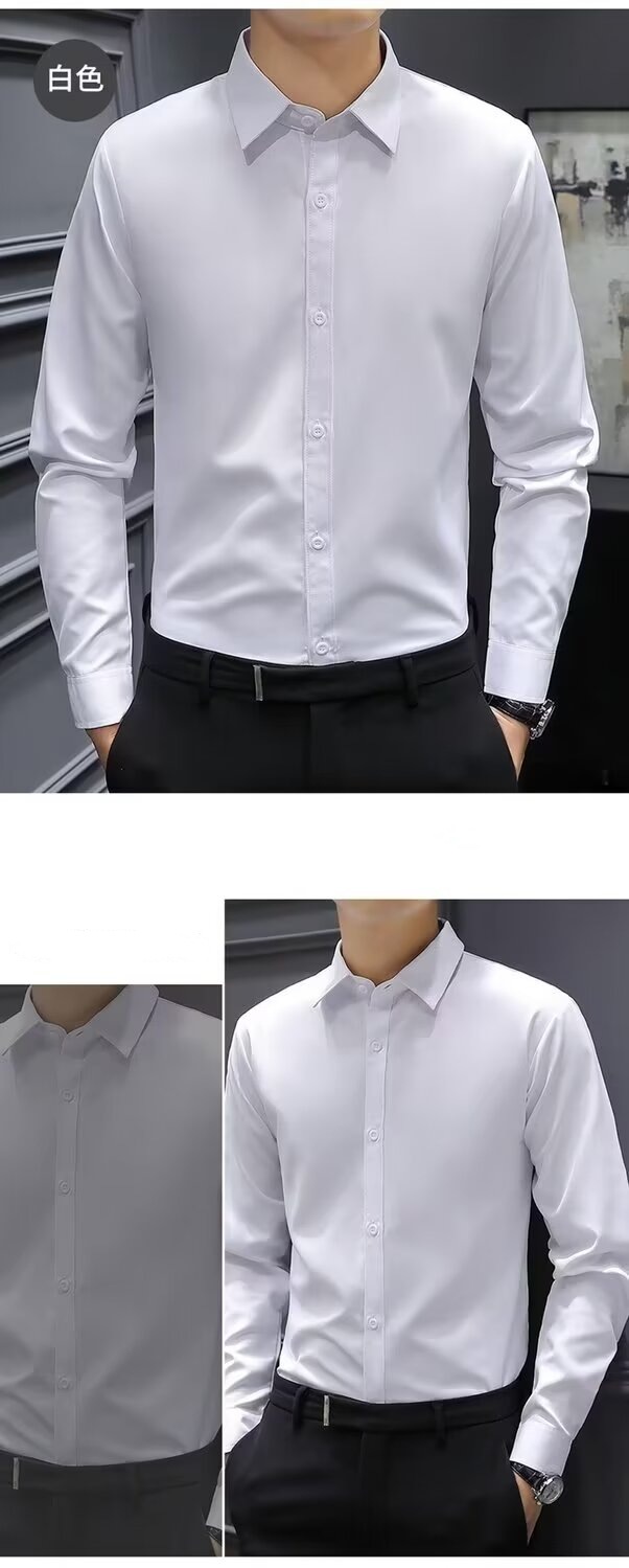 봄과 여름 회색 흰색 셔츠 남성용 긴팔 한국식 슬림 핏 전문 비즈니스 캐주얼 공식 셔츠 작업복 패션스토어 가기