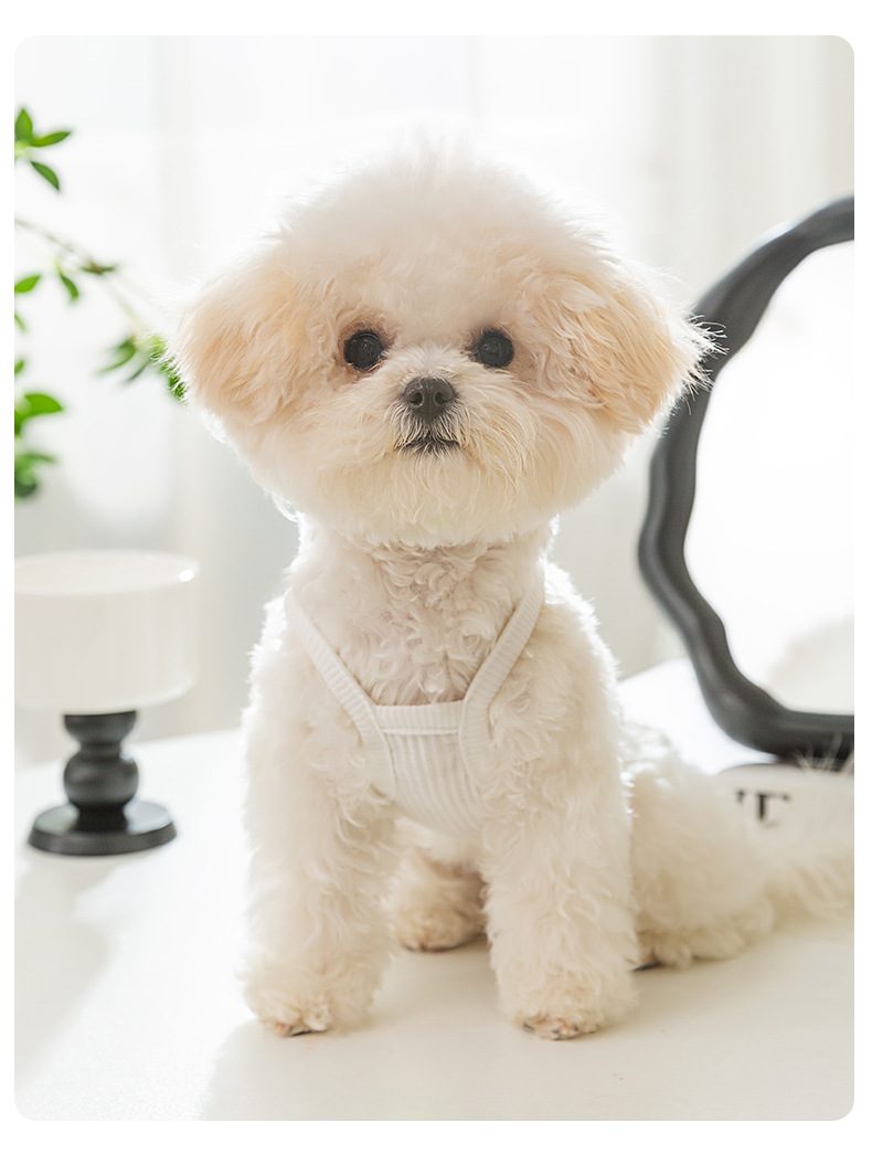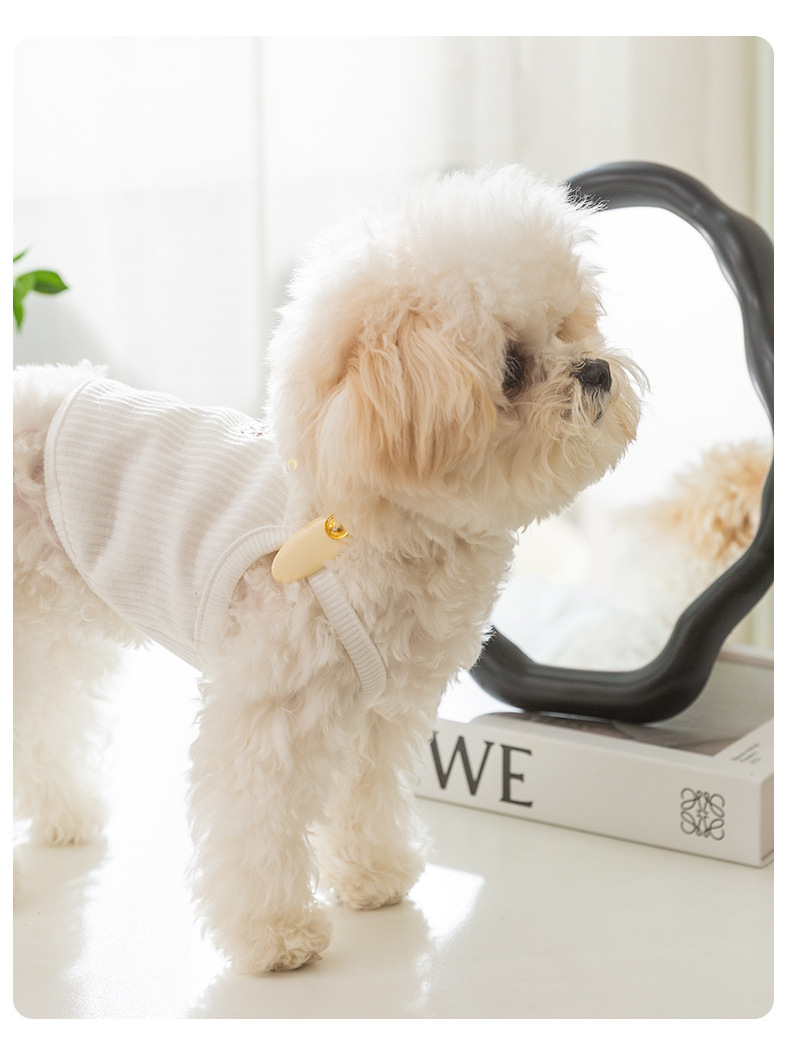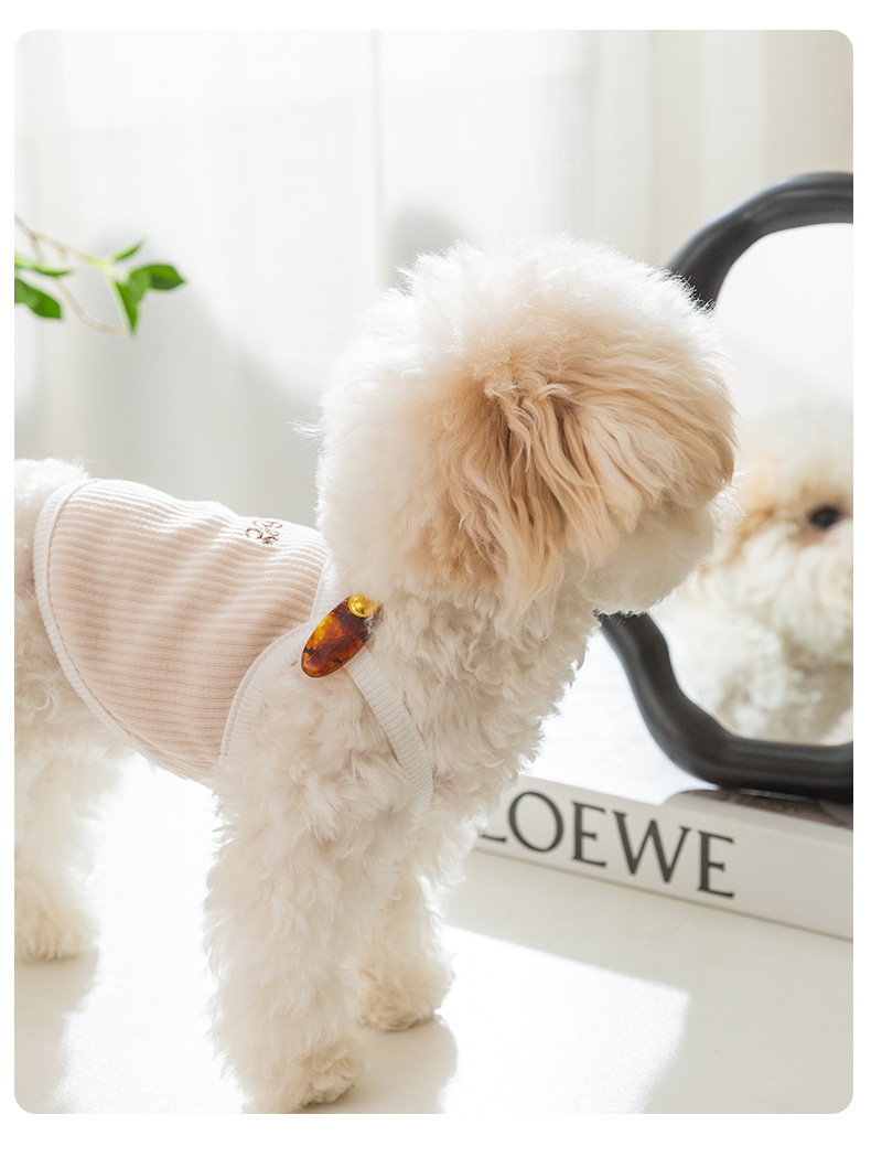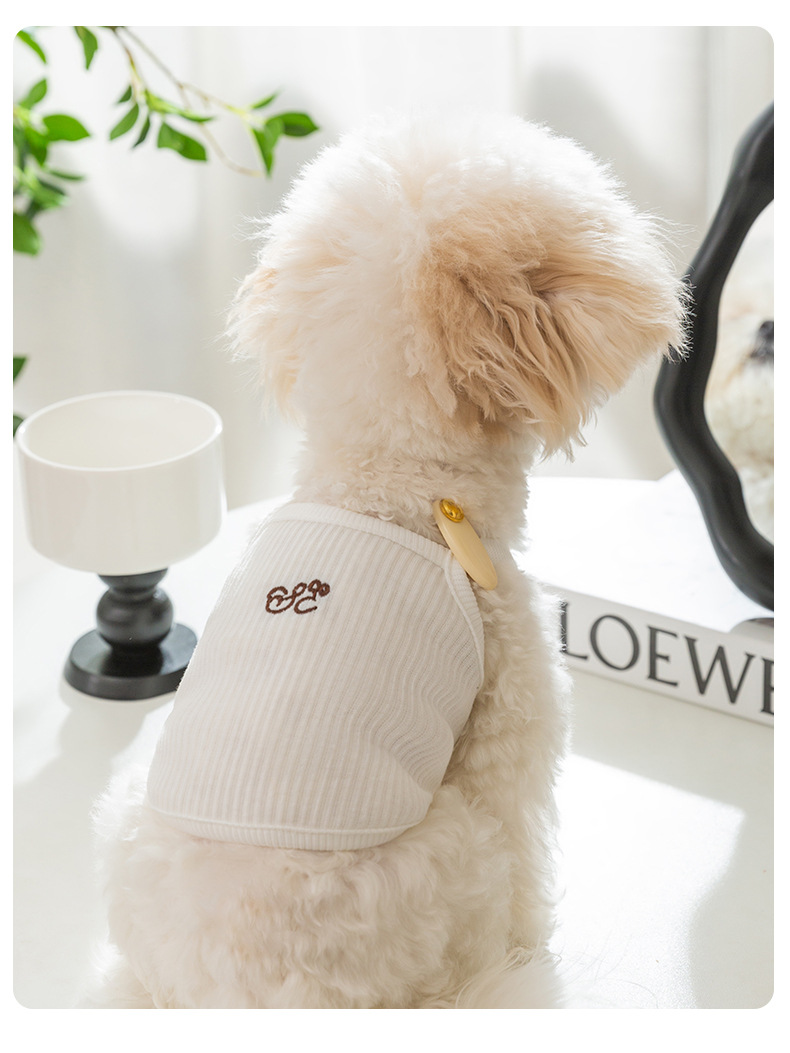 개옷 한국식 봄과 여름 간단한 작은 머리핀 자수 두 다리 끈 고양이 테디 베어 애완 동물 옷