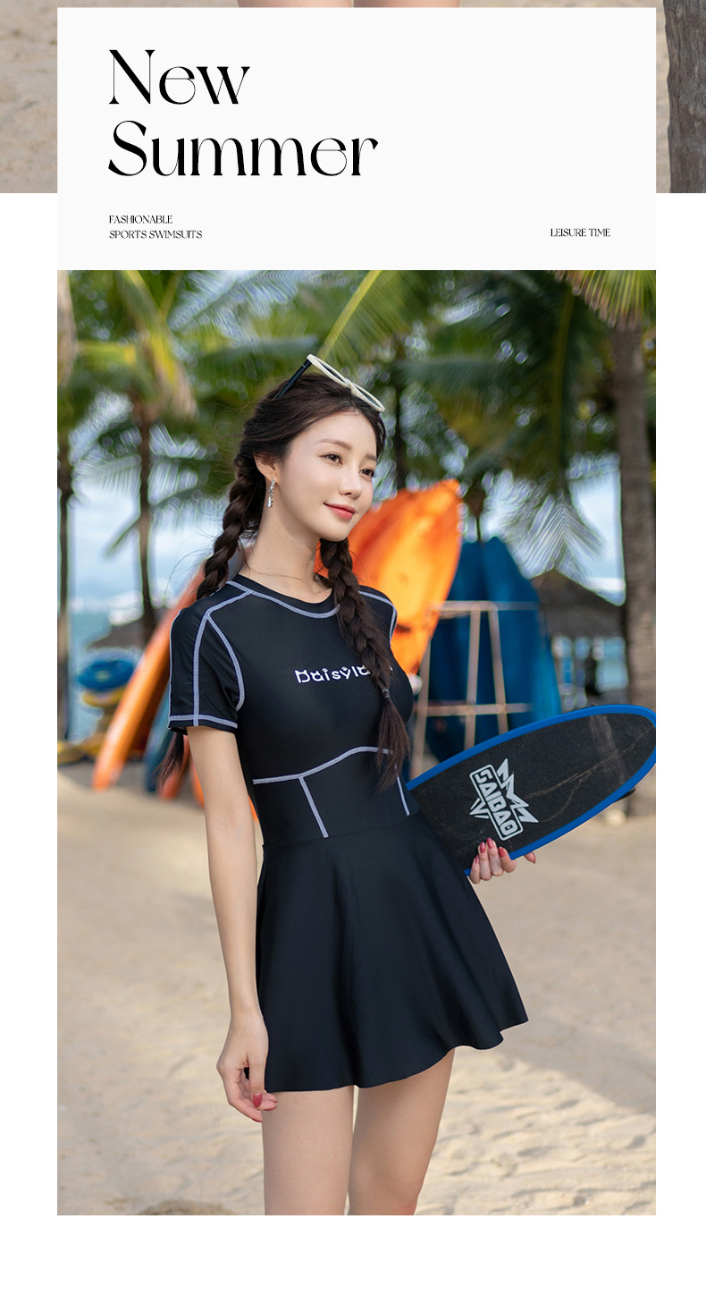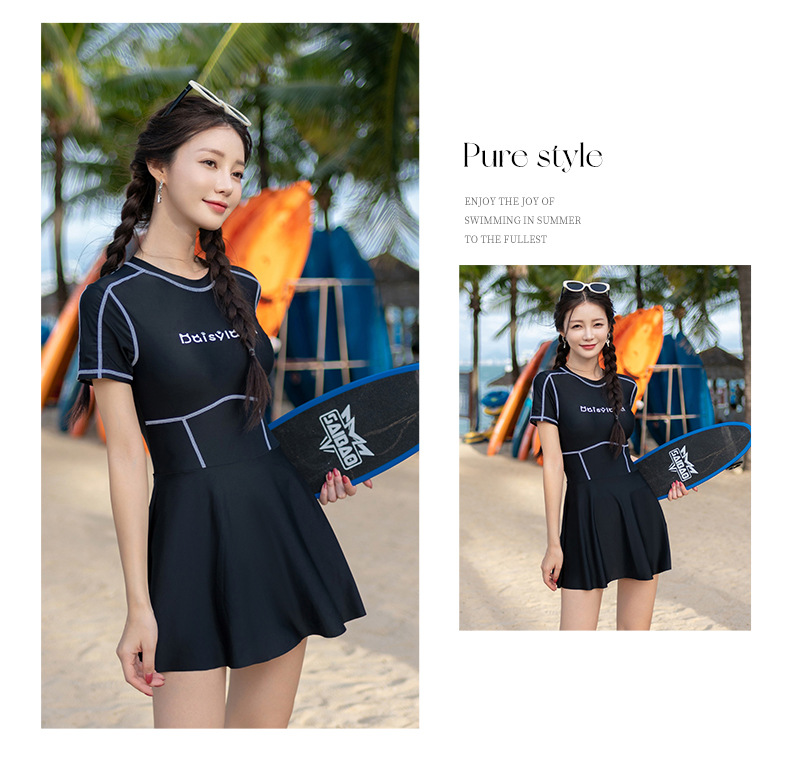 공장 직접 스포츠 스타일 수영복 새로운 간단한 한국 스타일 보수적 인 슬리밍 고기 커버 플러스 사이즈 온천 해변 수영복