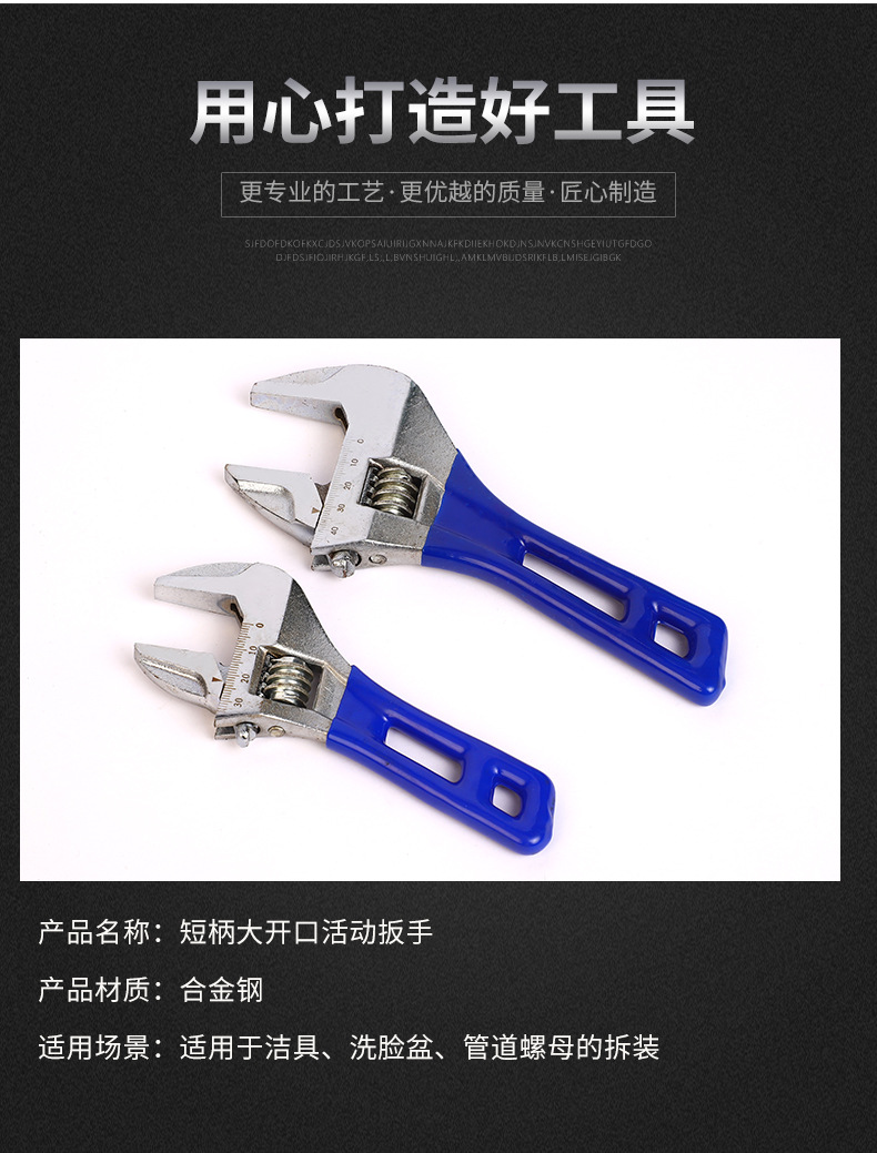 • 200mm8 인치 짧은 손잡이 큰 열려있는 조정가능한 렌치