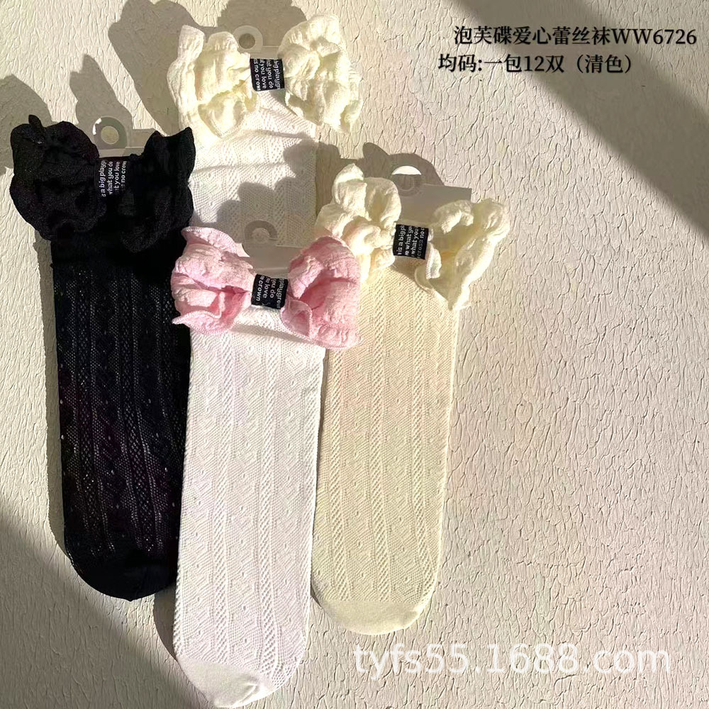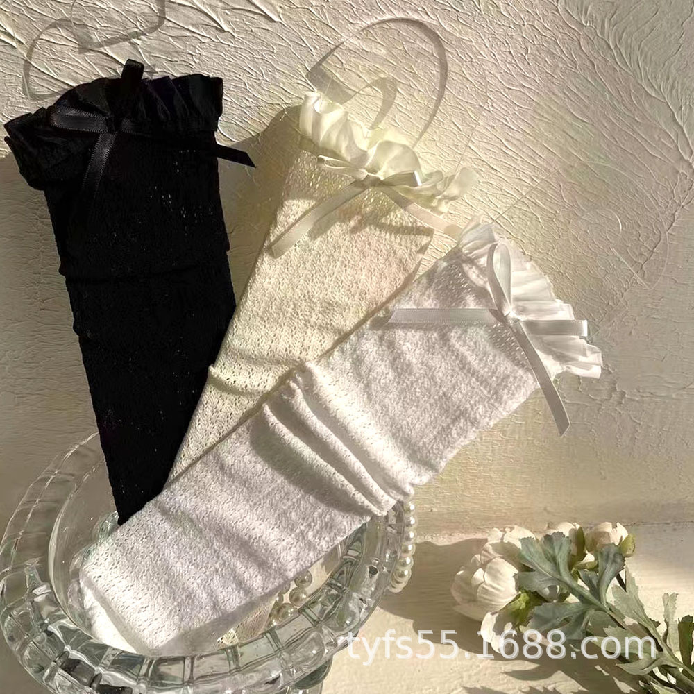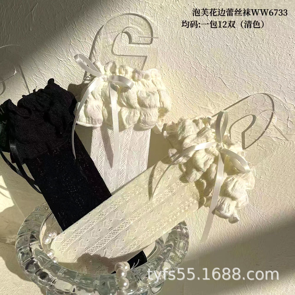 产品名称:春夏女童中筒袜日系蕾丝小腿袜子泡芙花边蝶结蕾丝袜洛丽塔公主袜