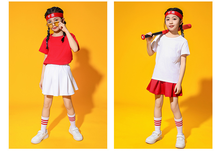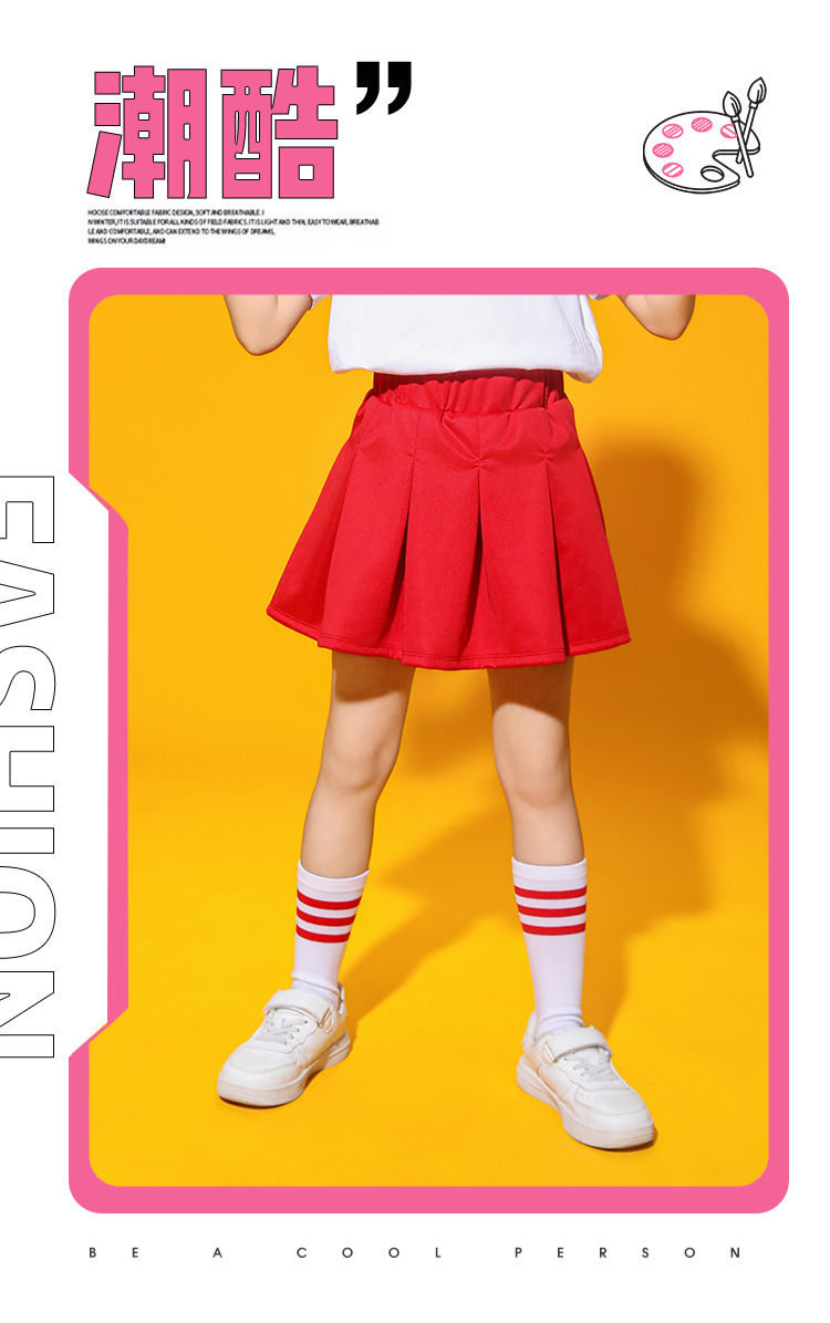 설날 어린이 공연복 여아용 흰색 스커트 여름 초중등학생 교복 주름 스커트 2024