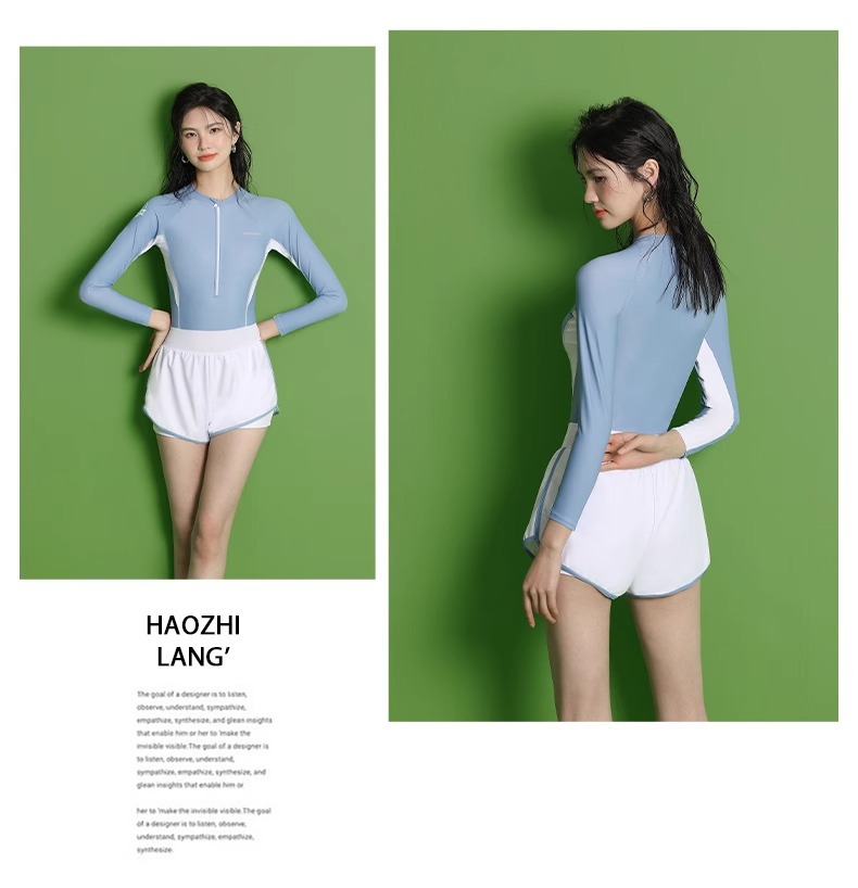 【하오지랑】여성용 긴팔 원피스 수영복 여름 보수적인 여성 수영복 온천 수영복 일광 차단