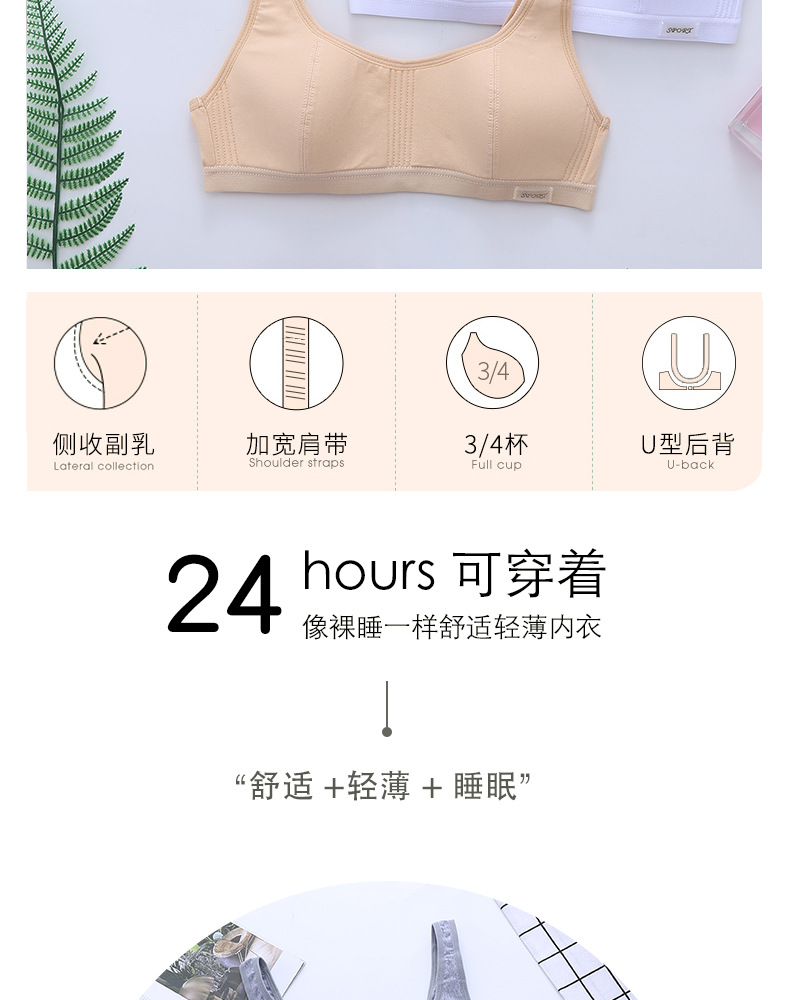 순수 면화 개발 기간 소녀 속옷 학생 중학교 12-18 세 얇은 브래지어 고등학생 무선 속옷 여성스토어 가기