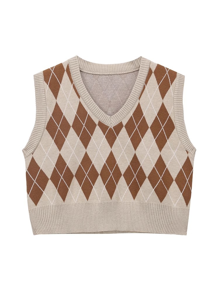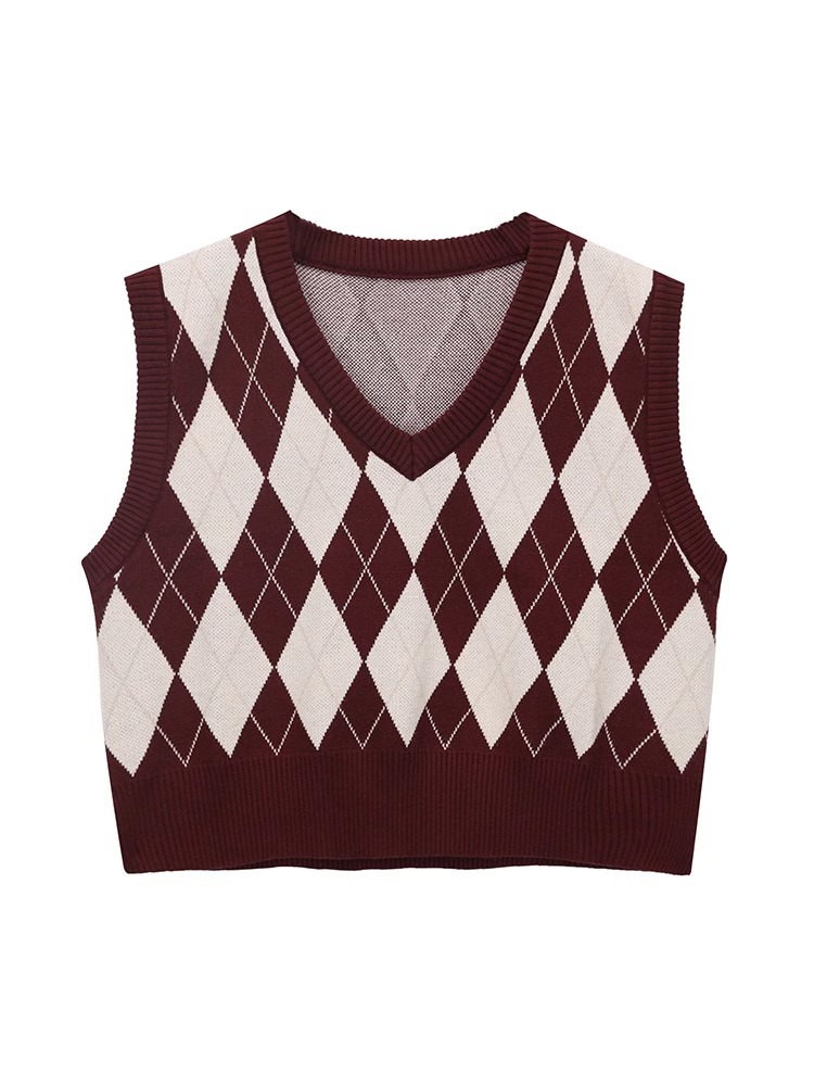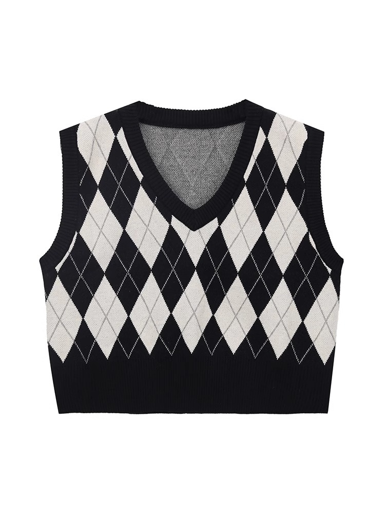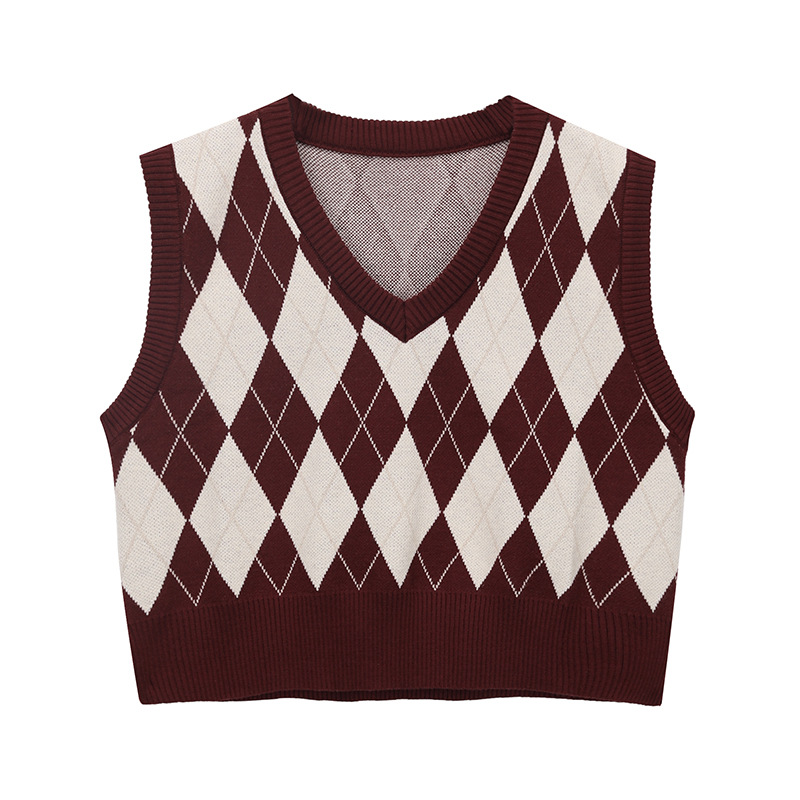 미국 복고풍 프레피 스타일 니트 조끼 마름모 짧은 스웨터 조끼 여성 코트 유행