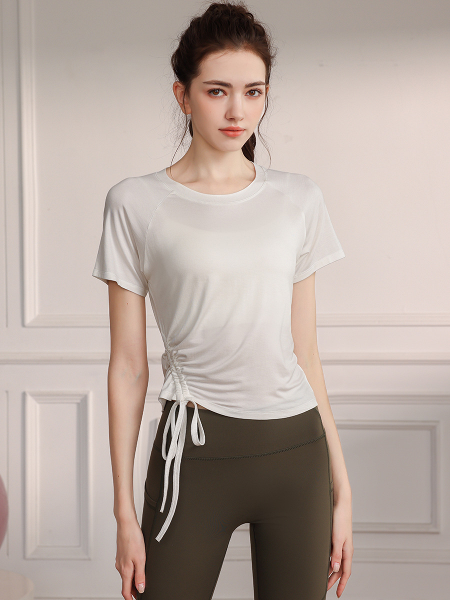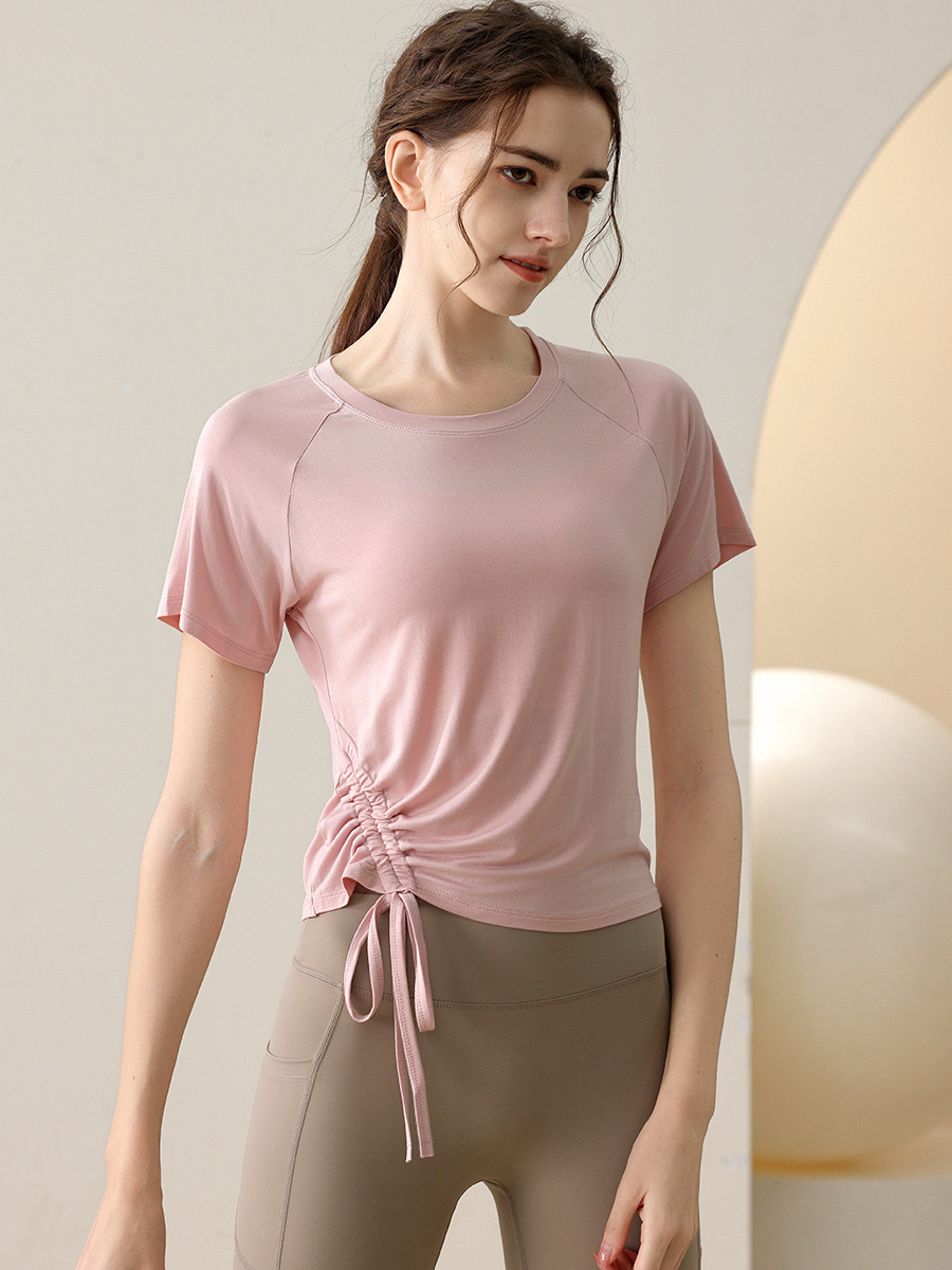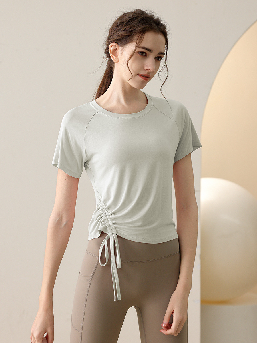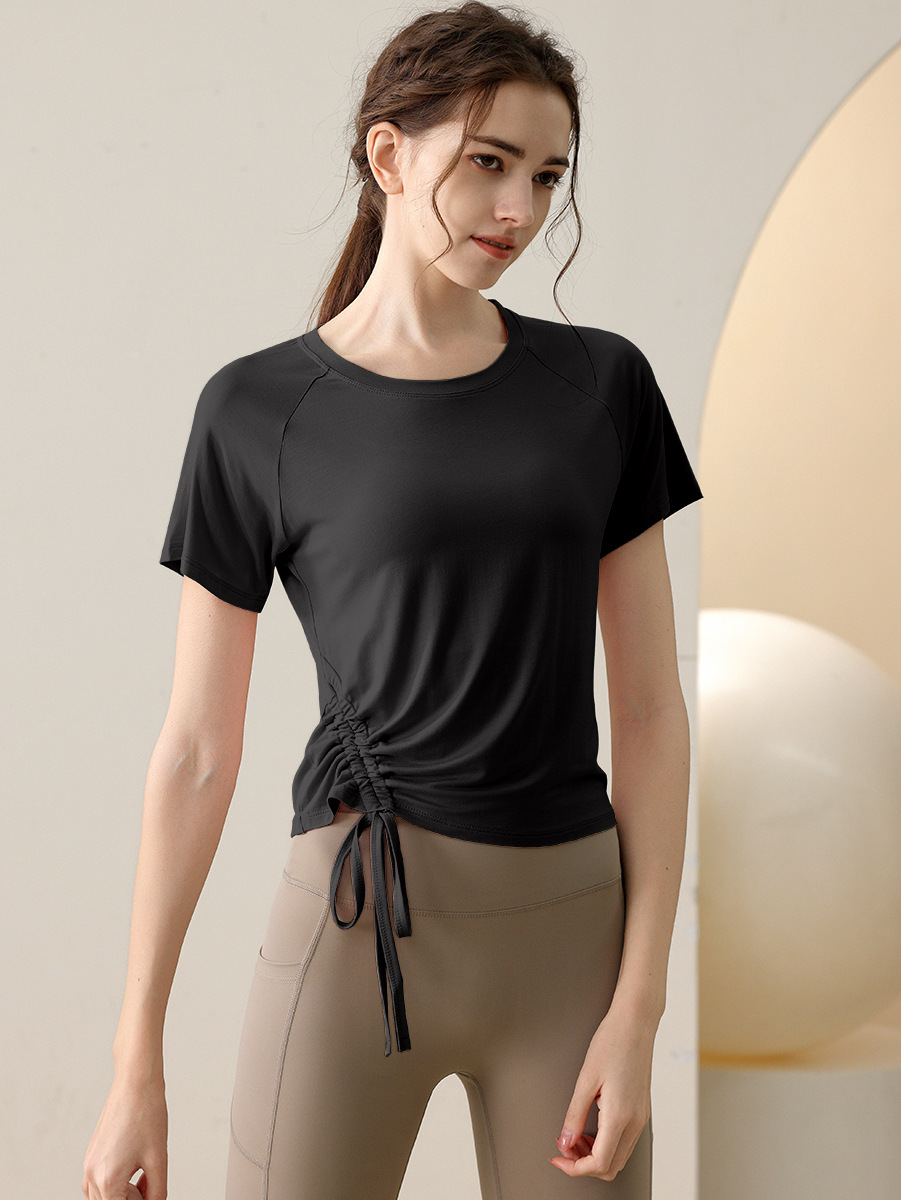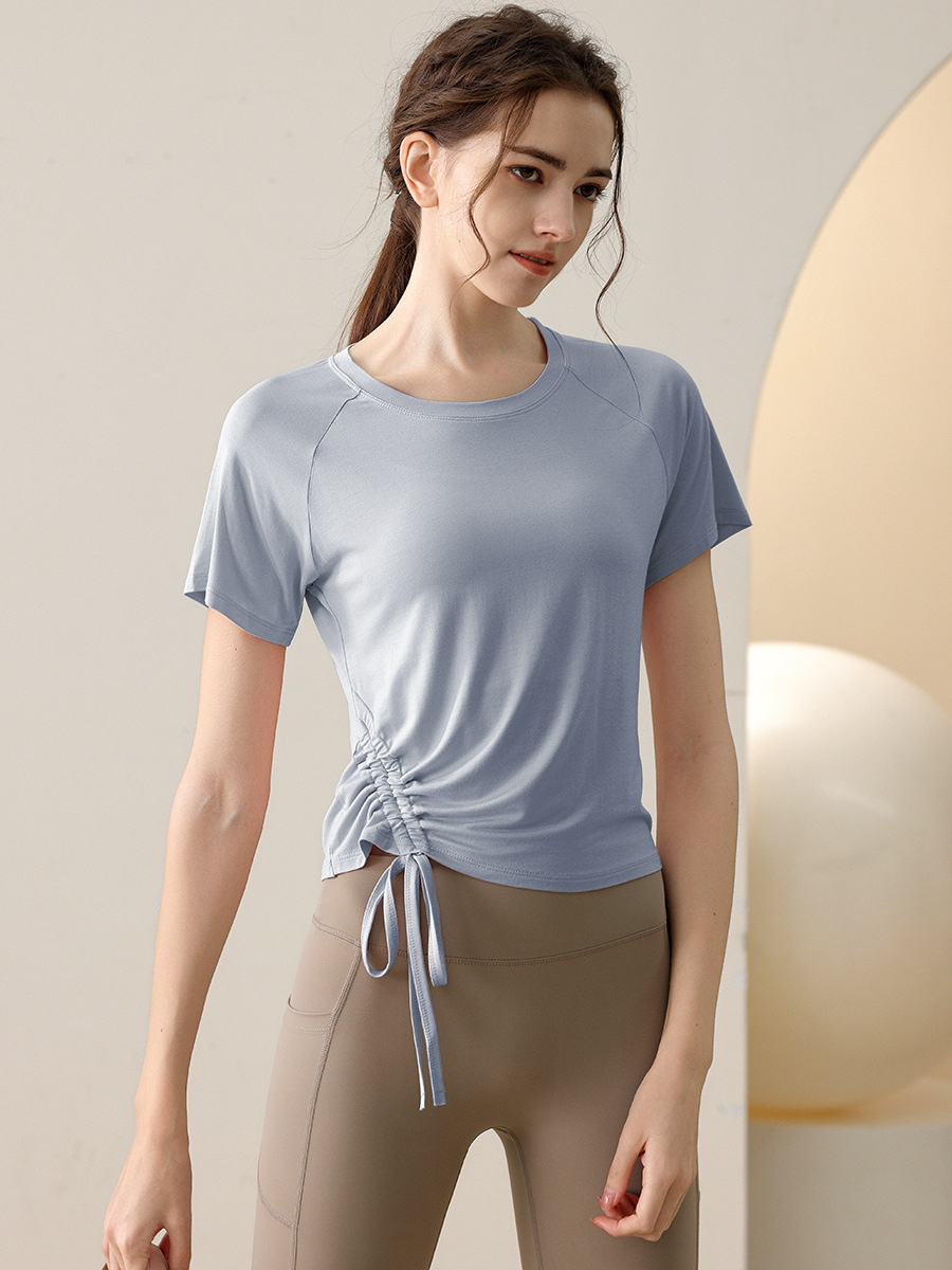 새로운 여름 요가 옷 drawstring 스포츠 반팔 최고 여성 달리기 피트니스 전문 필라테스 훈련 티셔츠 블라우스스토어 가기