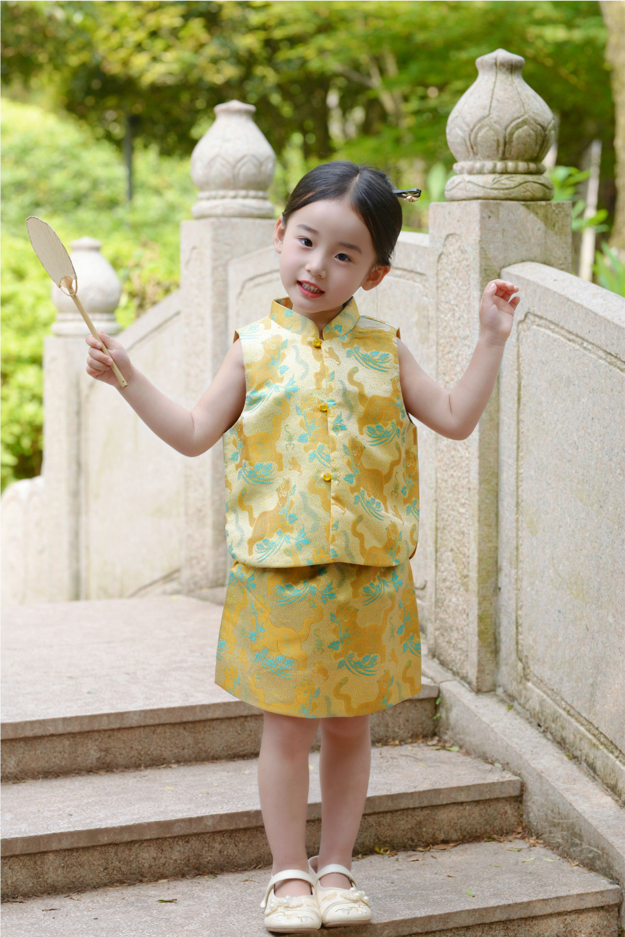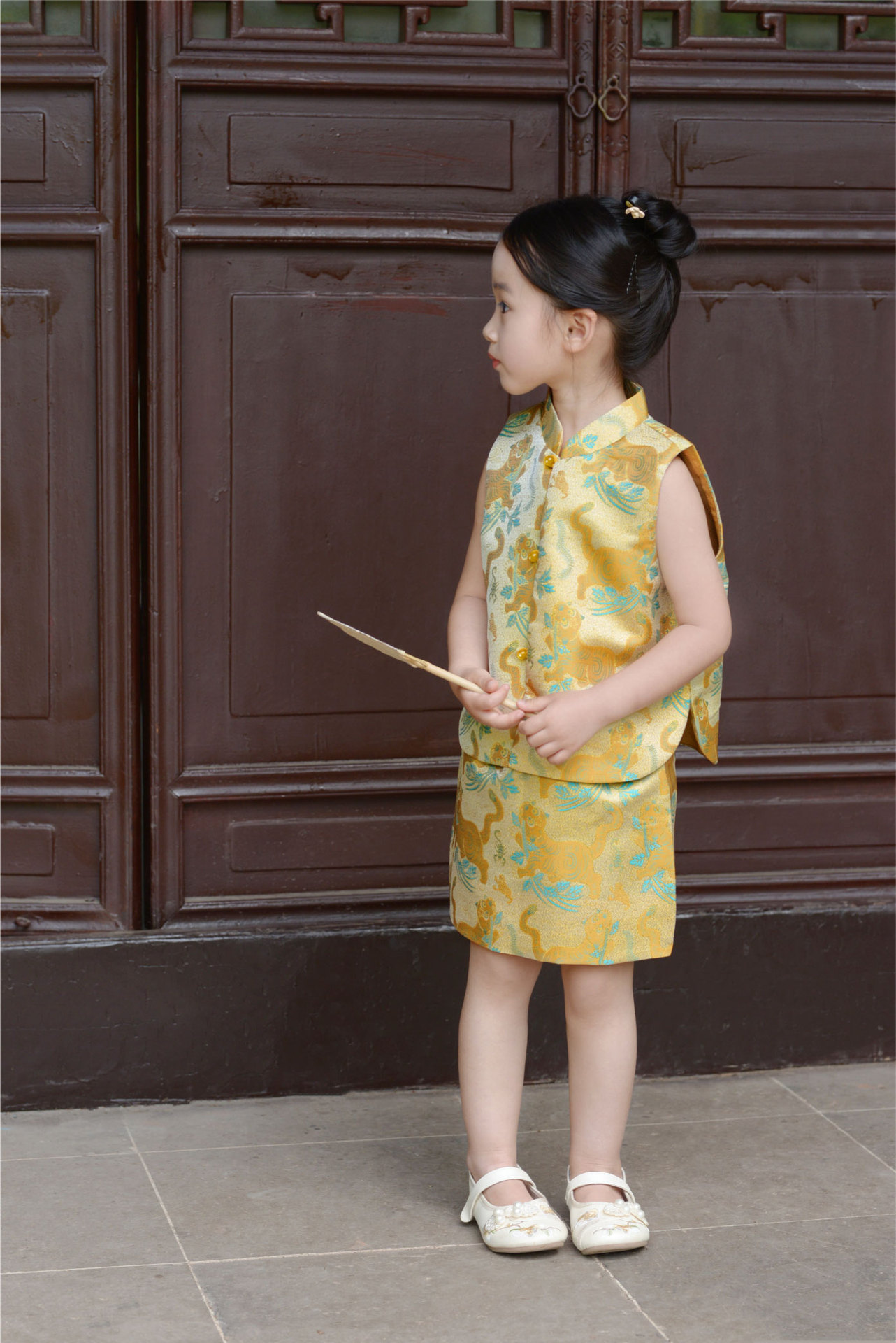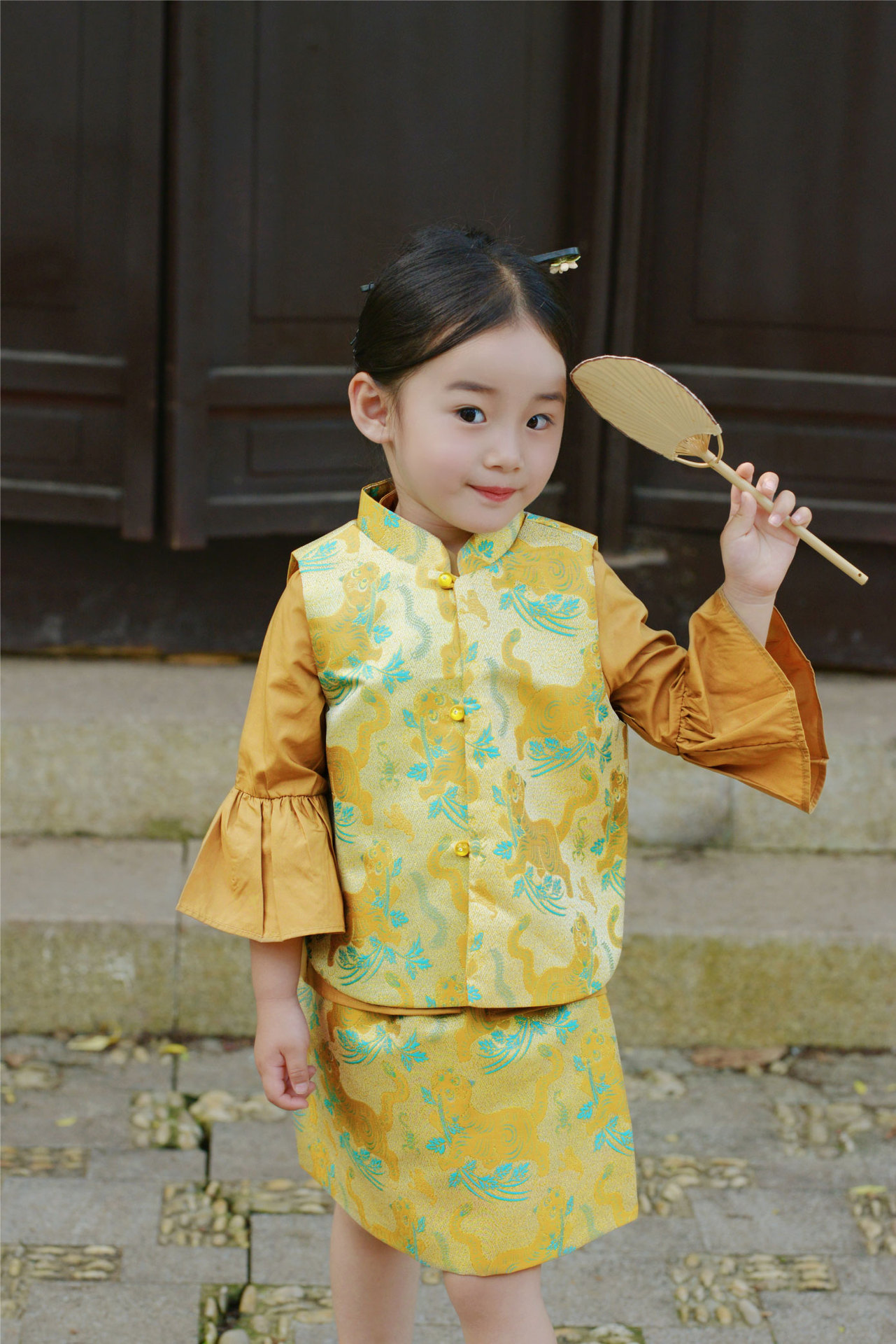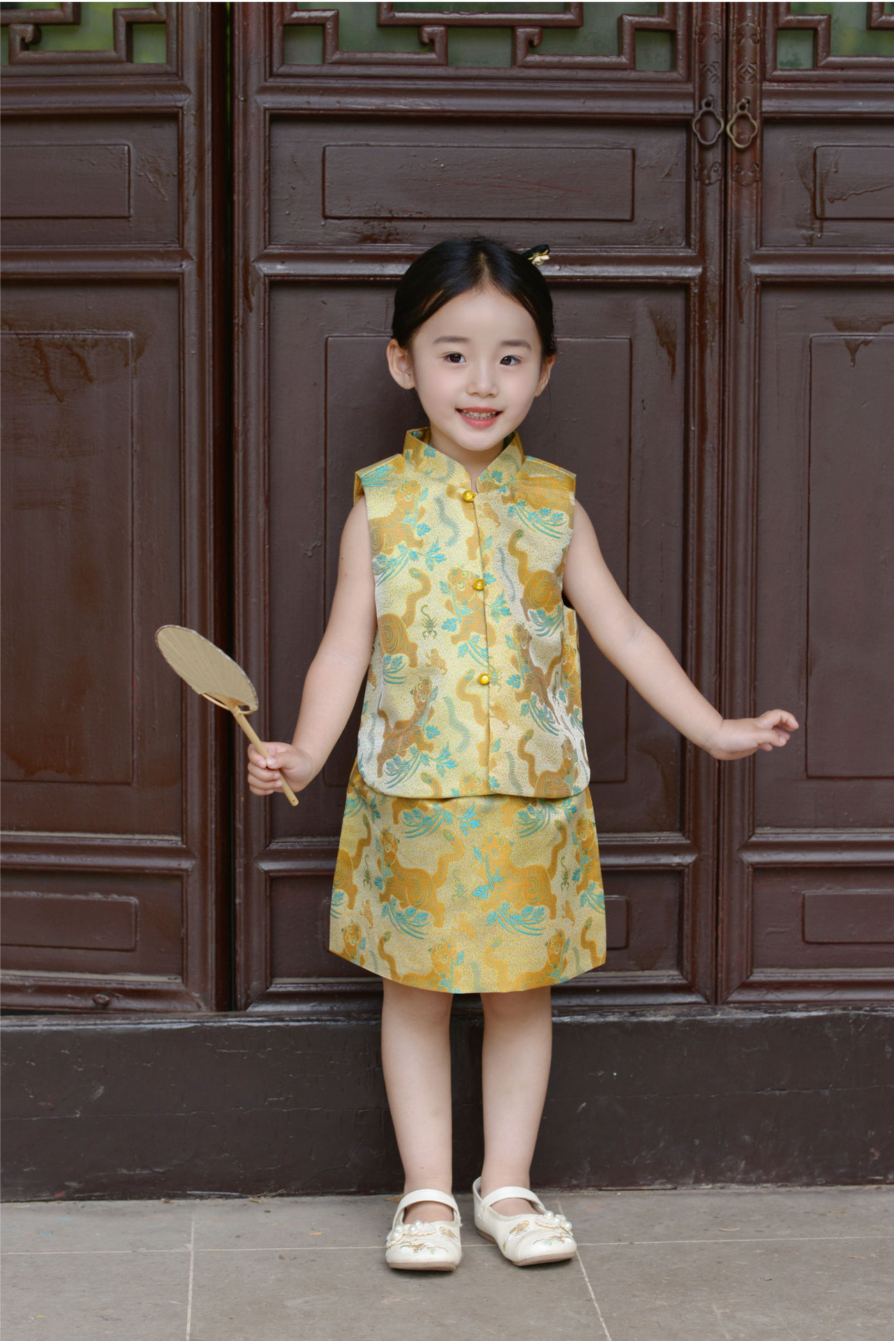 봄과 가을 새 소녀 타이거 Shengwei 느슨한 조끼 스커트 세트 생일 연회 원피스 탕 세트