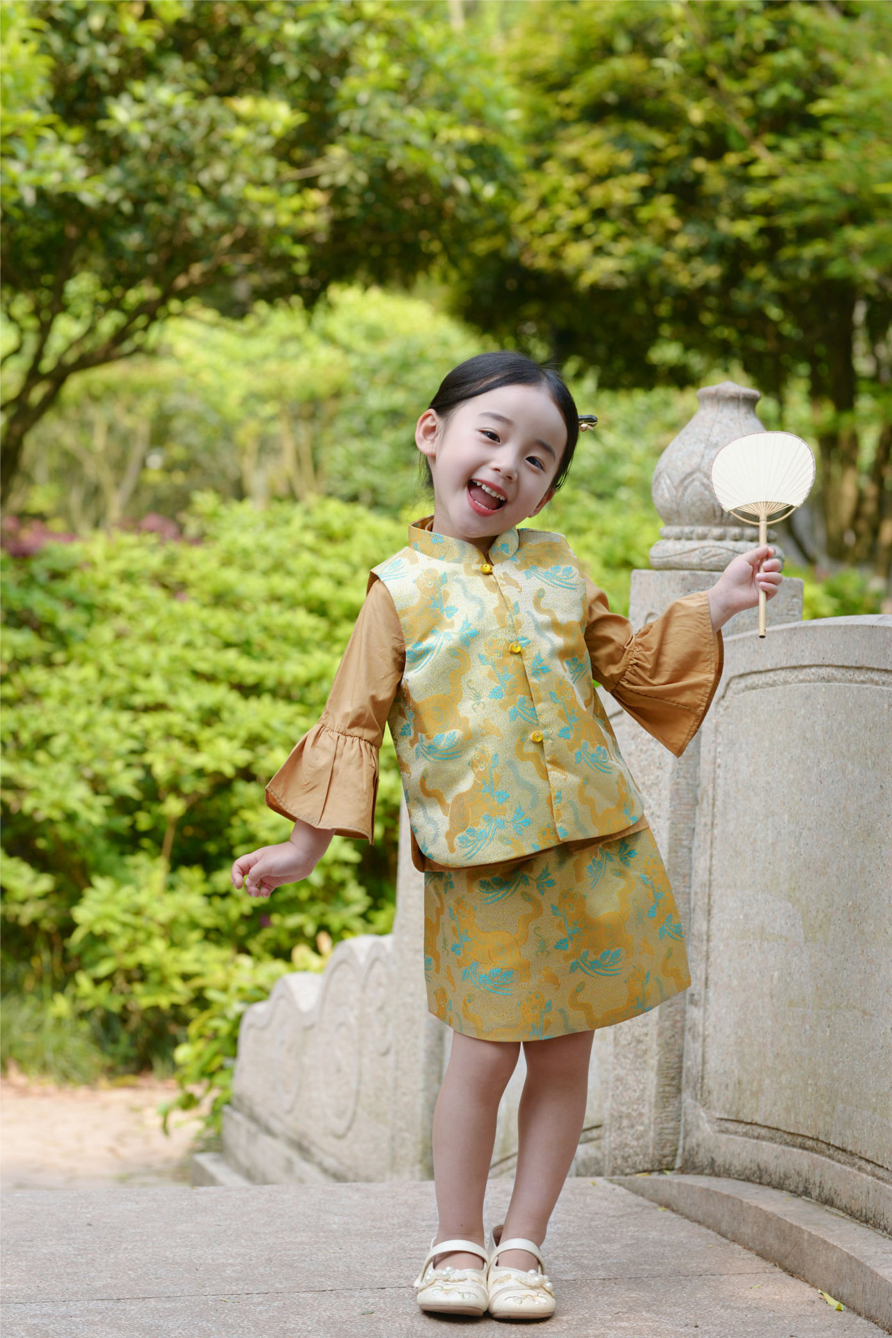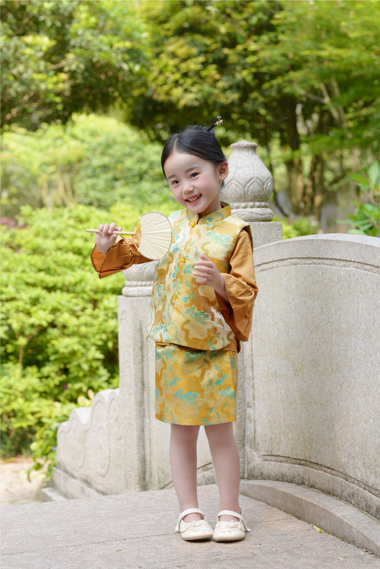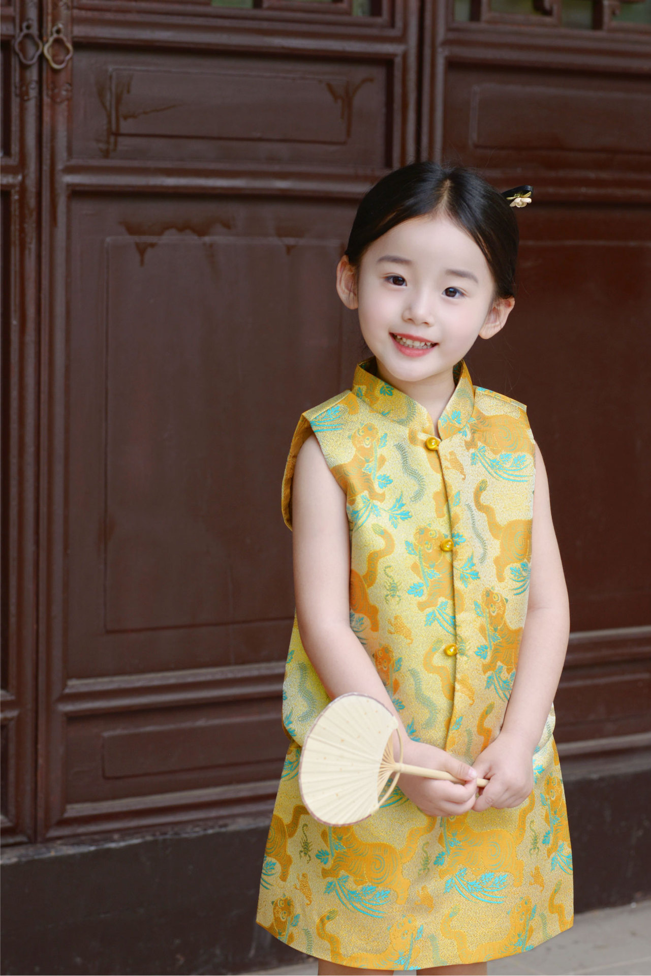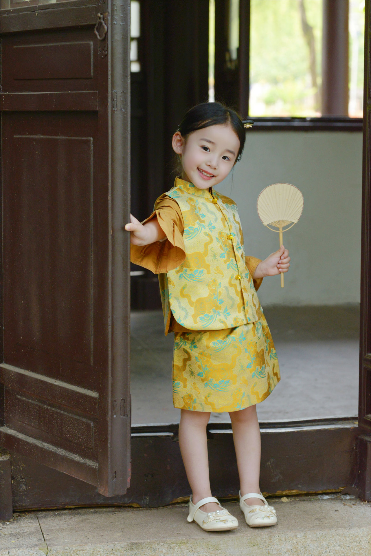 봄과 가을 새 소녀 타이거 Shengwei 느슨한 조끼 스커트 세트 생일 연회 원피스 탕 세트