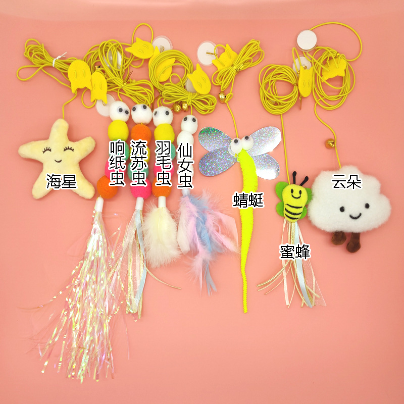 고양이 장난감 자기 안녕 구호 스윙 매달려있는 문 탄성 깃털 재미있는 고양이 스틱 벨 마우스 고양이 용품