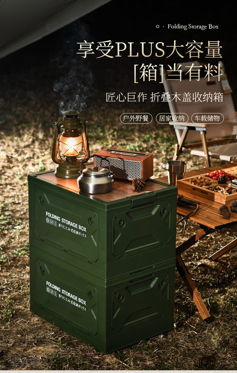 야외 캠핑 접이식 저장 상자 테이블 이중 사용 다기능 트렁크 야외 캠핑 장비 용품 저장 상자스토어 가기