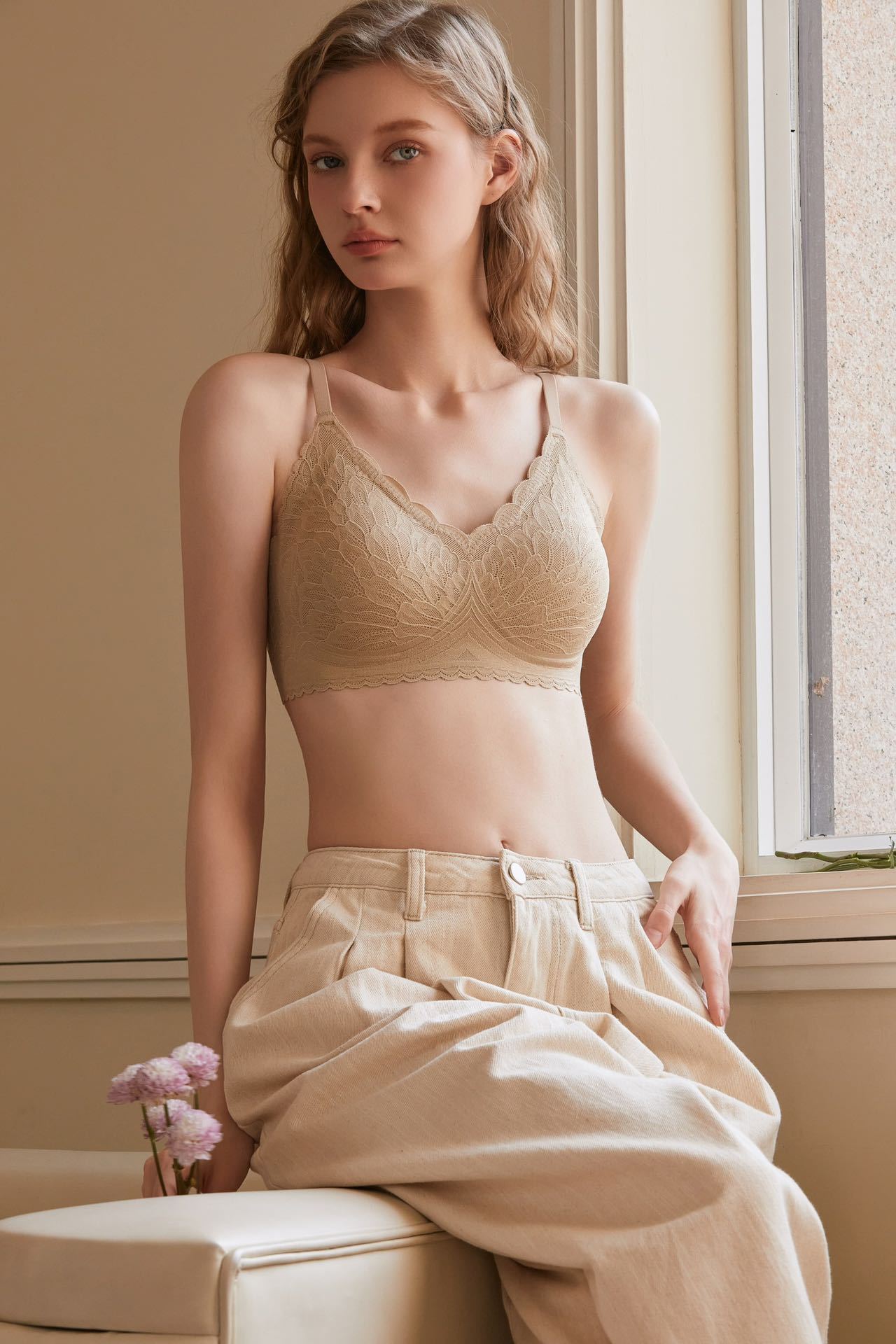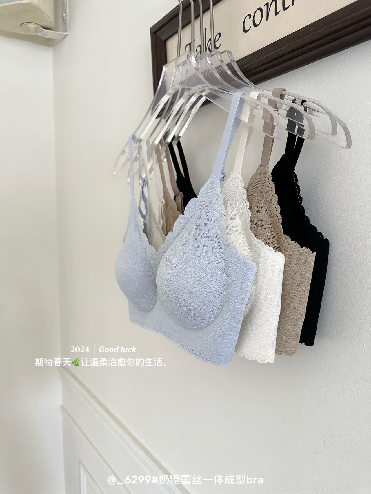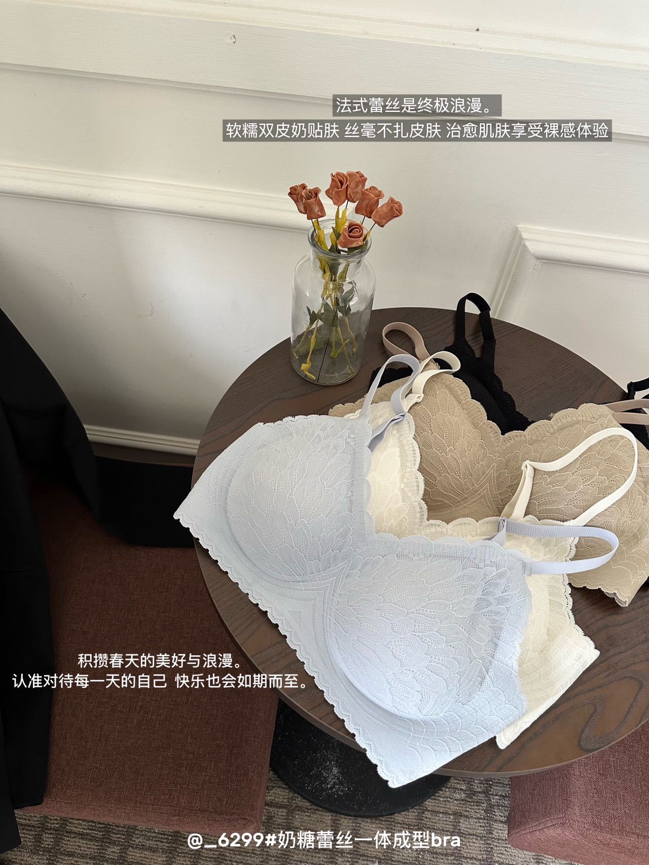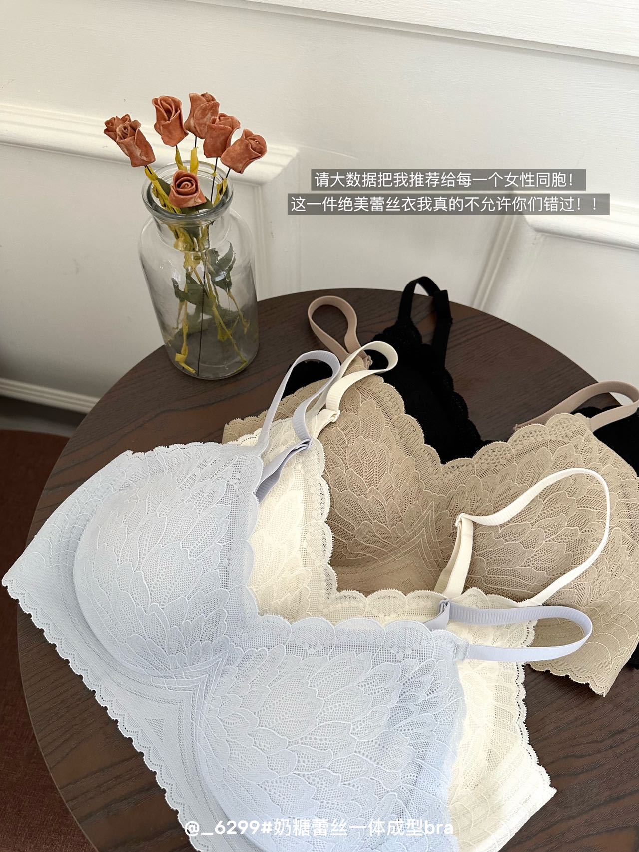 토피 레이스 통합 원활한 속옷 봄과 여름 얇은 통기성 작은 가슴 고정 컵 작은 푸시 업 브래지어스토어 가기
