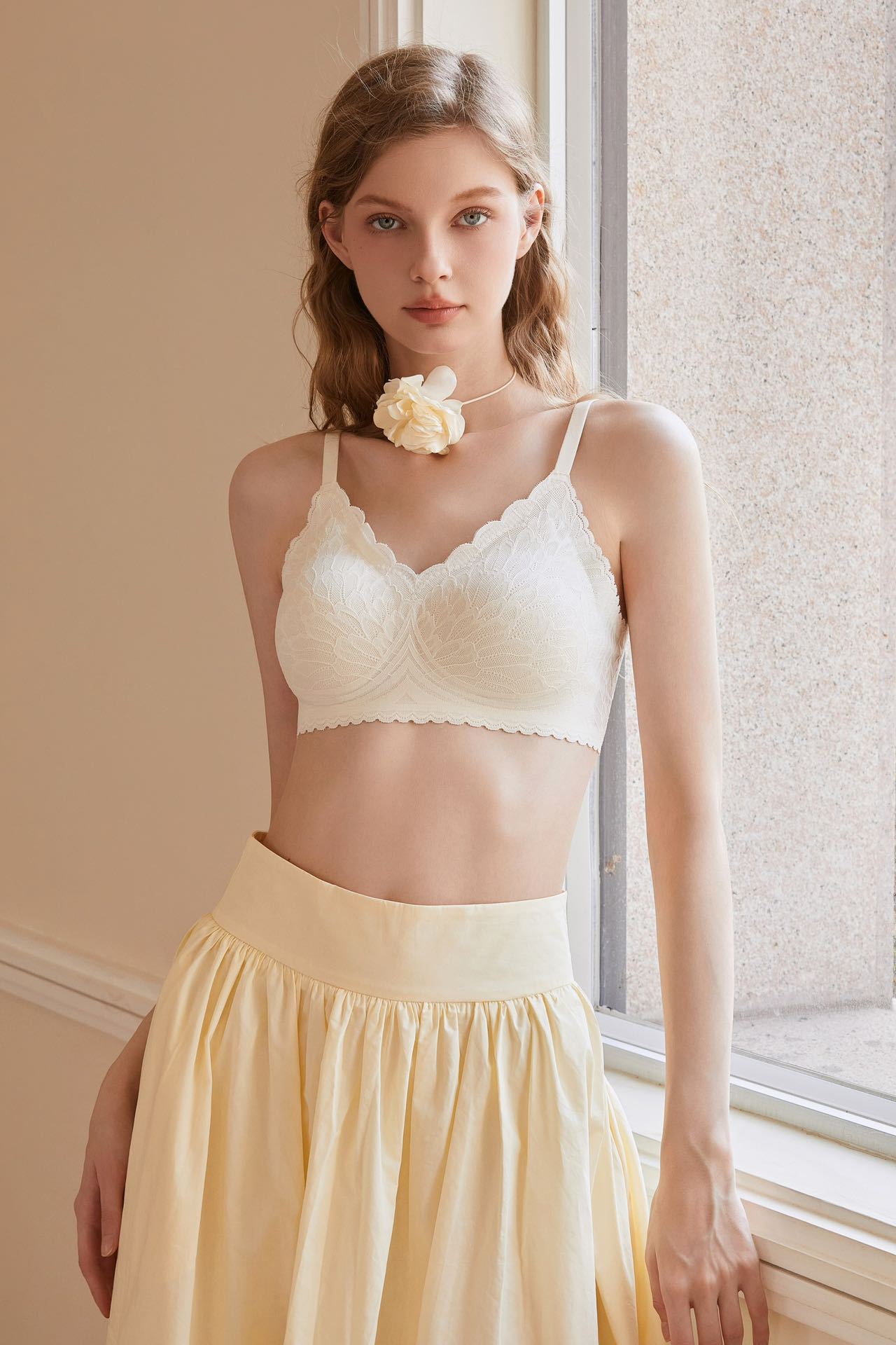 토피 레이스 통합 원활한 속옷 봄과 여름 얇은 통기성 작은 가슴 고정 컵 작은 푸시 업 브래지어