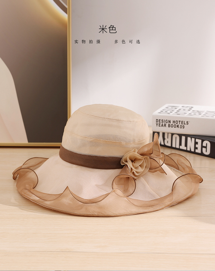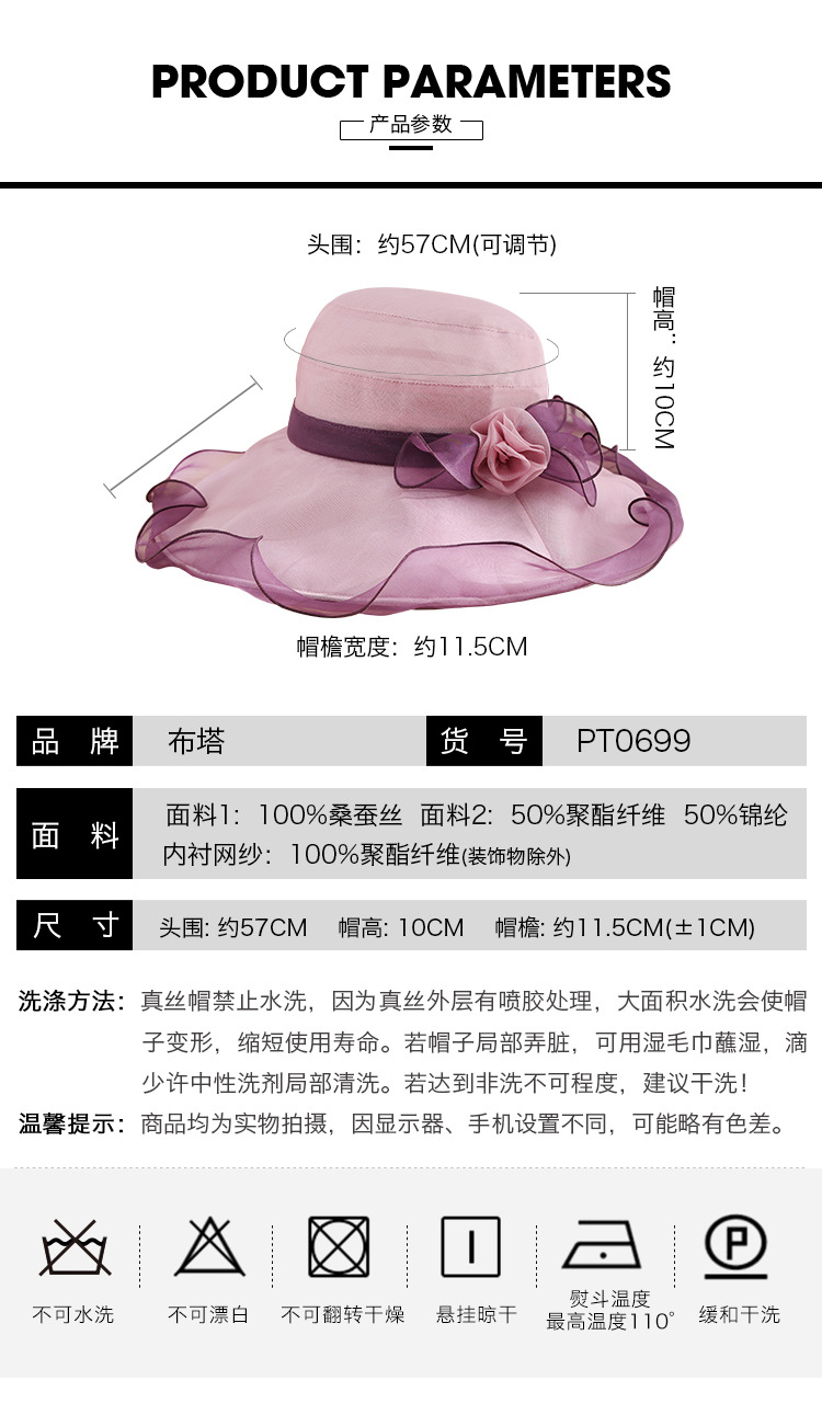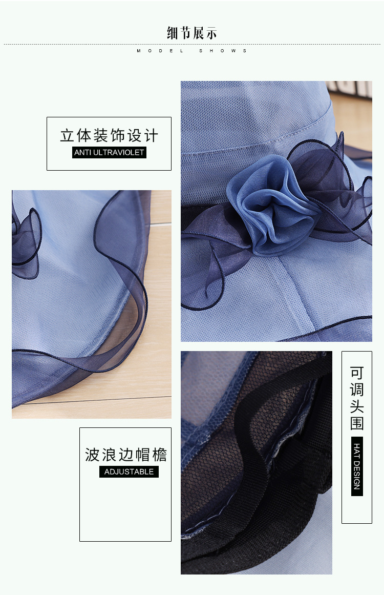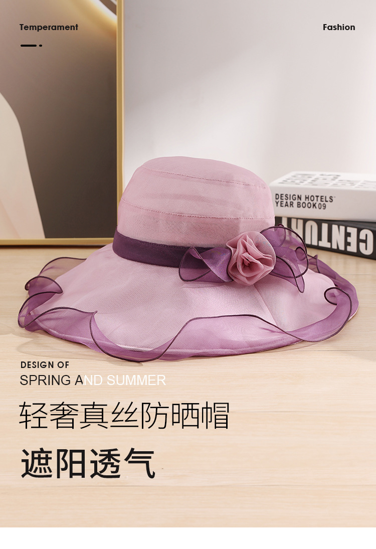 부타 큰 테두리 태양 모자 여성의 여름 우아한 태양 모자 뽕나무 실크 큰 테두리 태양 모자 파도 가장자리 0699
